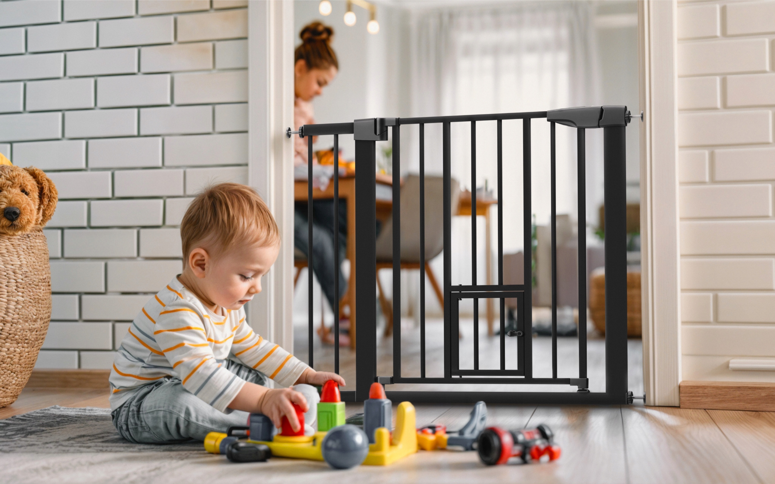 Drzwiczki dla zwierząt otwierają się niezależnie od barierki.