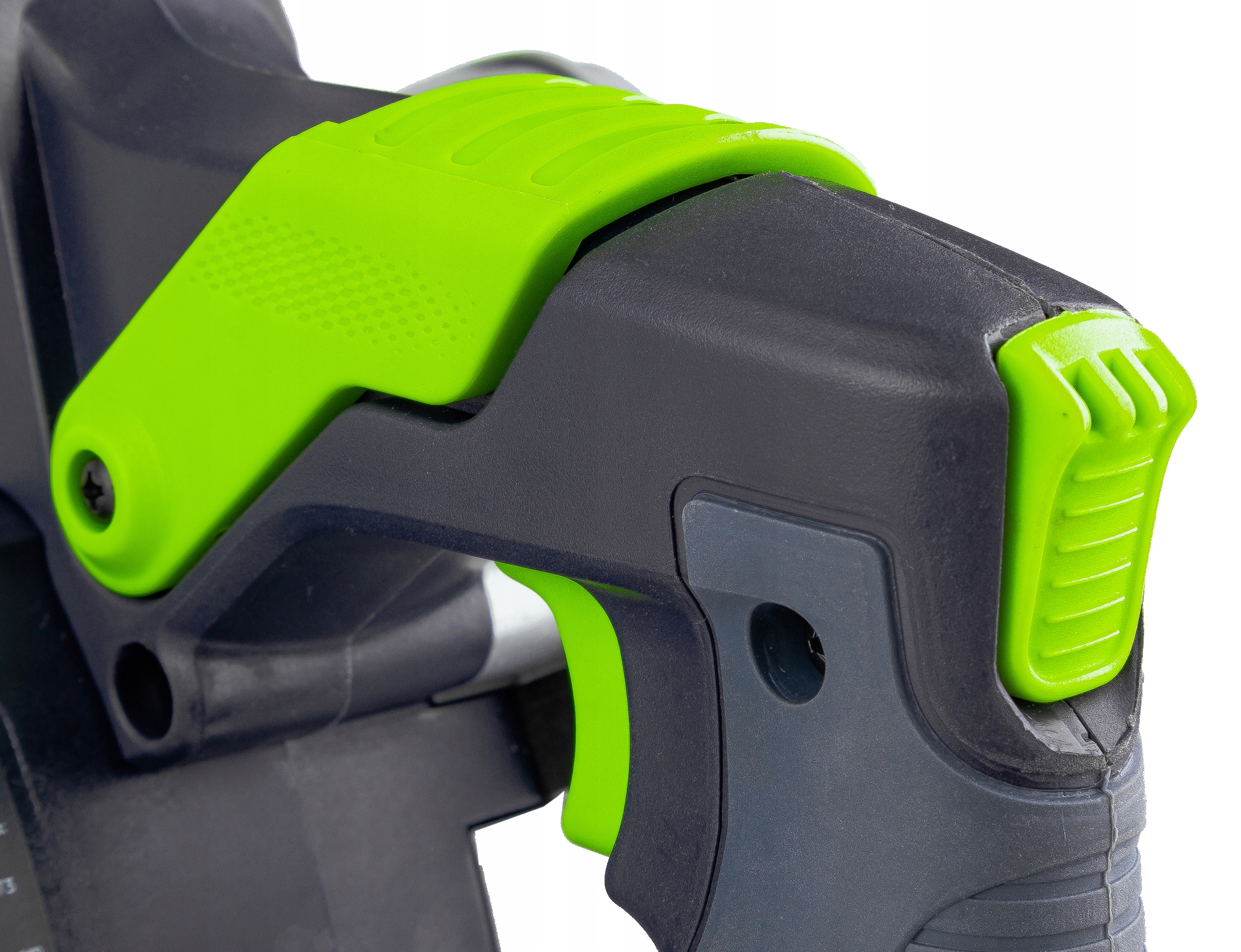 Jeden przełącznik odpowiada za zabezpieczenie dwóch funkcji, po odblokowaniu możliwe jest uruchomienie narzędzia oraz zagłębianie
