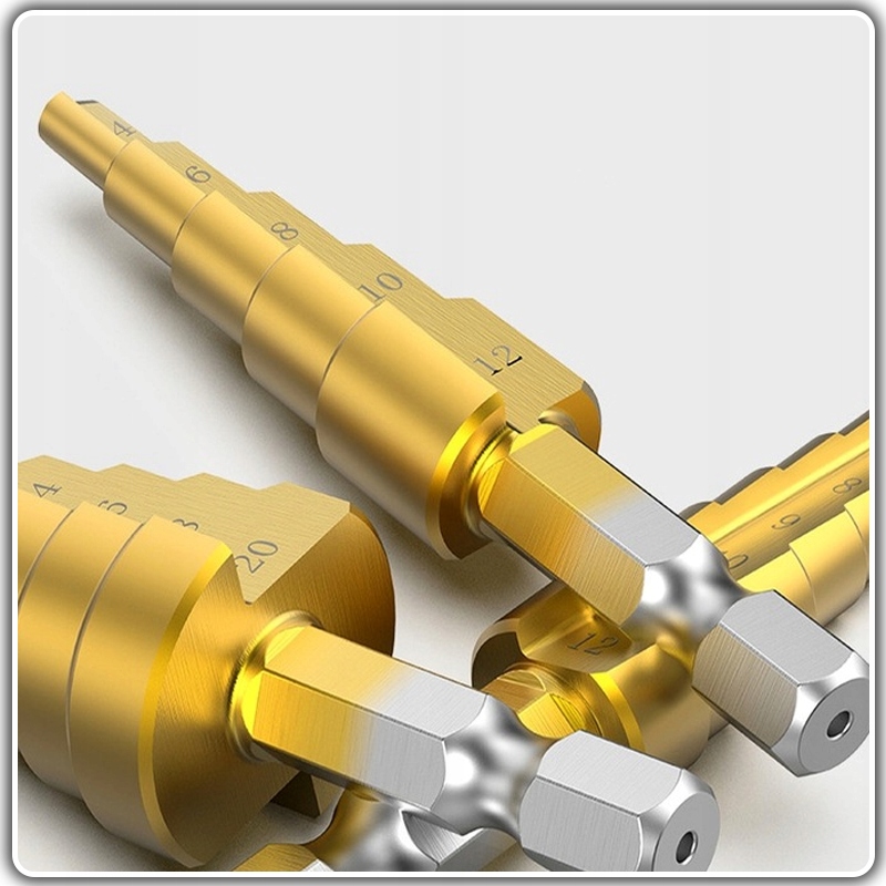 ⭐ Wiertła stopniowane są co 2 mm i posiadają laserowo wyciętą numerację, pozwalając na kontrolowanie wielkości otworu podczas wiercenia.