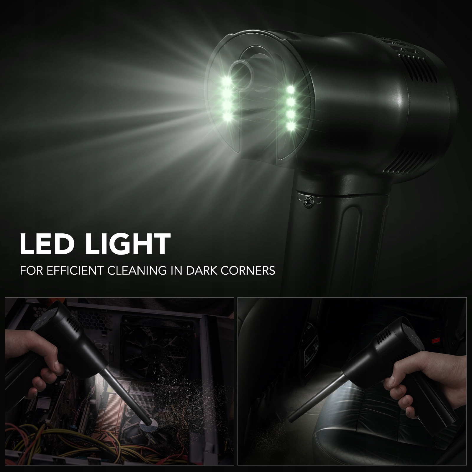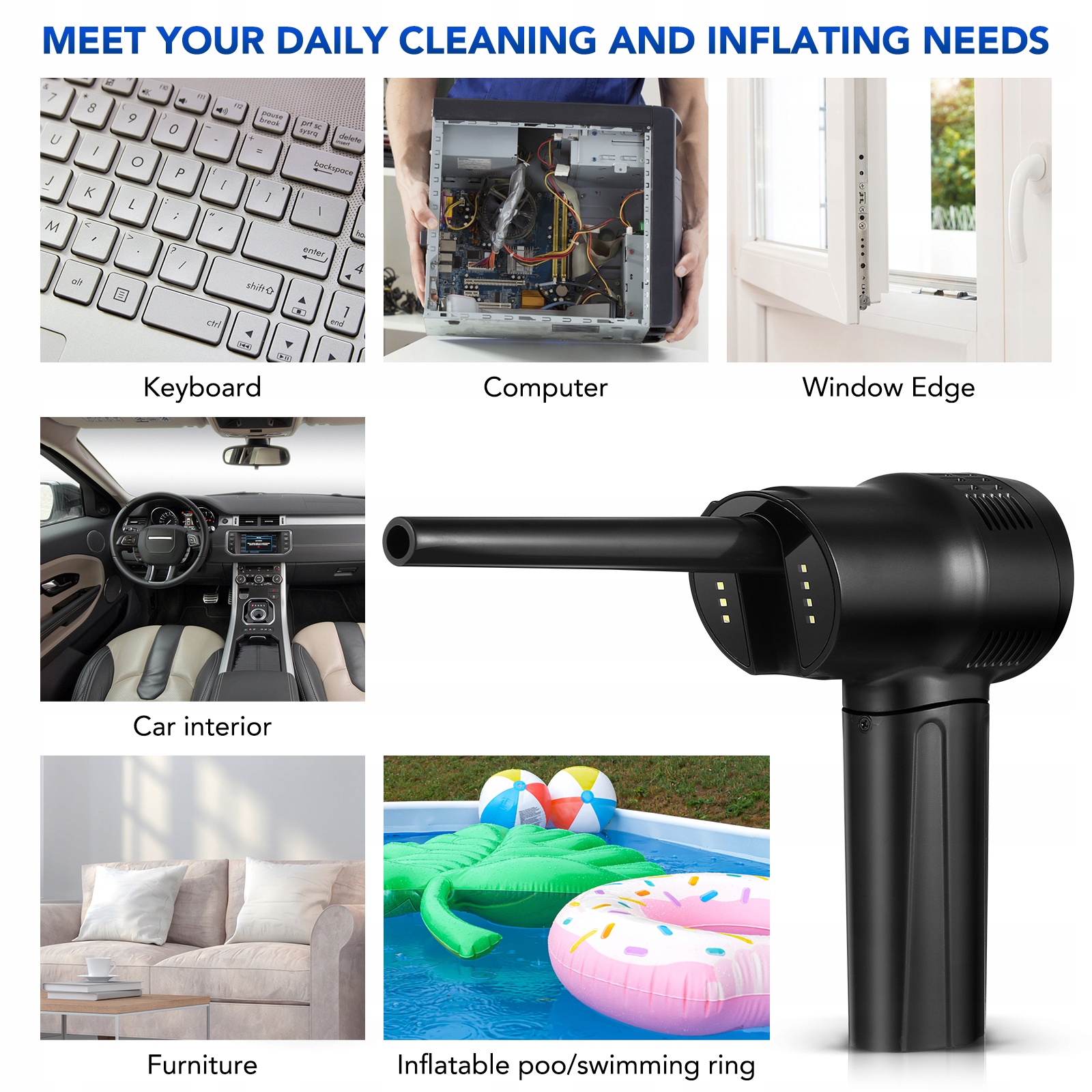Używaj dmuchawy elektrycznej wygodnie i bezprzewodowo do 30 minut (w najniższym trybie). Po użyciu szybko naładuj za pomocą portu USB do typu C!