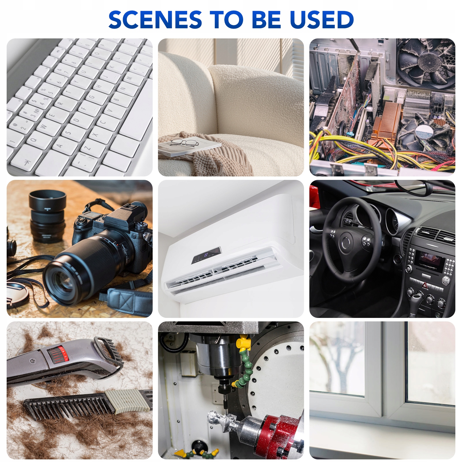 Czyszczenie mebli i artykułów gospodarstwa domowego: Dmuchawa może być używana do czyszczenia trudno dostępnych miejsc na meblach, lampach, żyrandolach, klimatyzatorach, wentylatorach itp.
