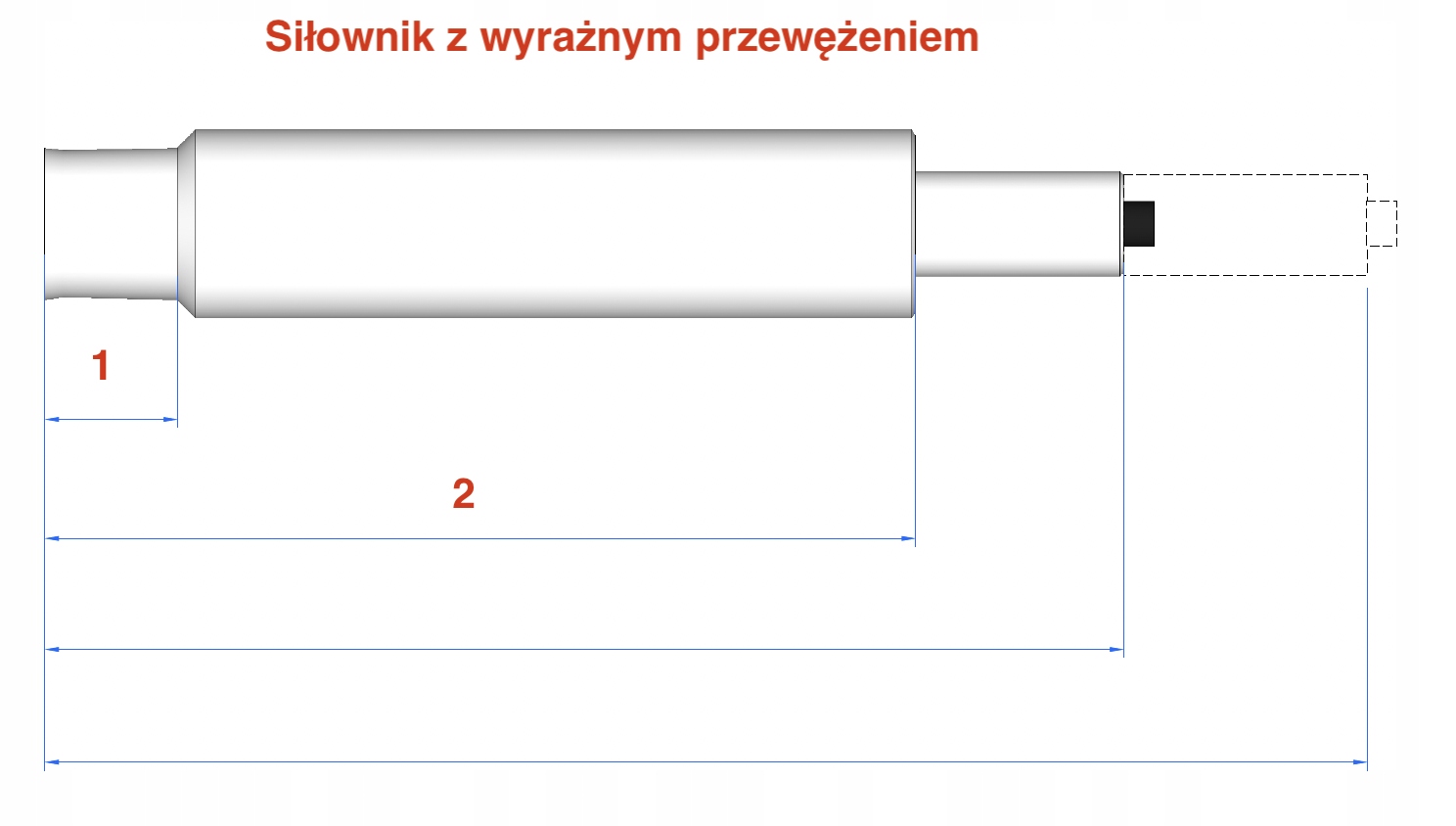 Wymiar Y - najniższy wymiar siłownika (kolor niebieski - jasny)