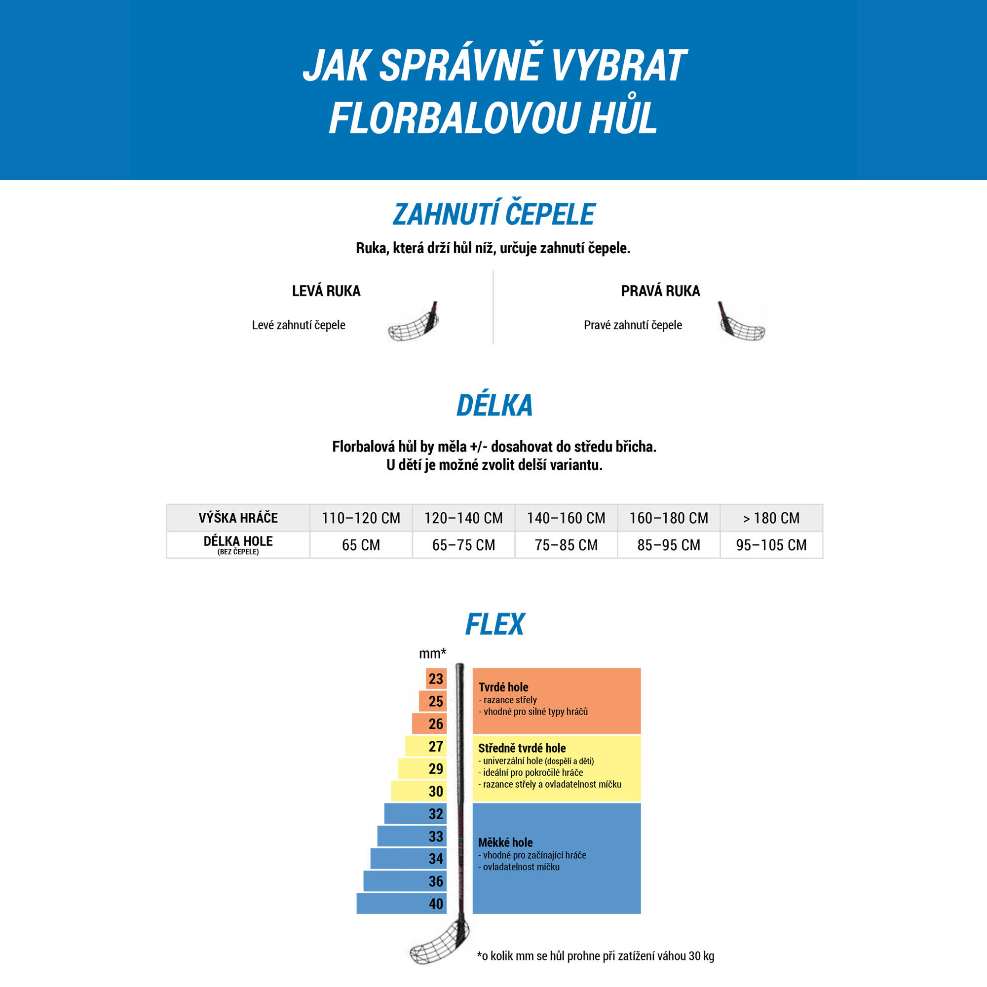 Kij powinien dosięgać do pępka zawodnika. Jeśli jest za duży, należy go przyciąć np. za pomocą piły do metalu.