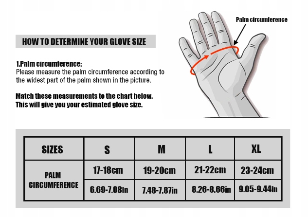 Uwaga dla pomocy podajemy długości środkowego palca w rozmiarach: