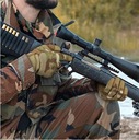 Специальные тактические перчатки по образцу перчаток американских спецназовцев. Они хорошо работают в боевых условиях и мотоциклетных видах спорта. Подкладка из полиэстера впитывает пот, а композитные вставки отлично защищают суставы и фаланги от травм и ушибов. Для лучшей точности обращения с оружием указательный палец был лишен подкрепление. Съемник на запястье позволяет перчатке плотно прилегать к руке и предотвращает ее случайное скольжение.