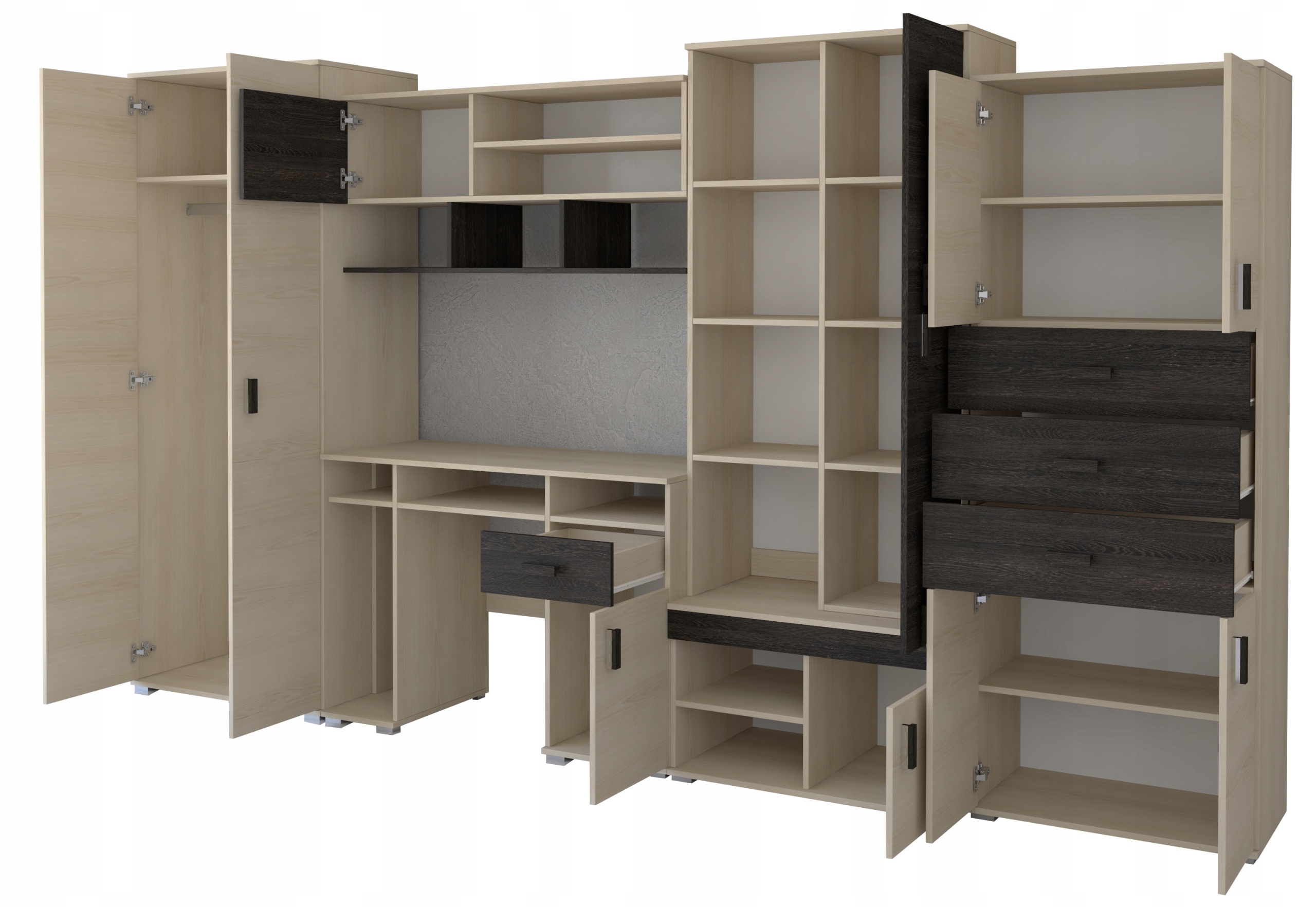 Dzięki wyborze między meblościanką z rtv lub meblościanką z biurkiem, możemy dopasować ją do każdego pomieszczenia.
