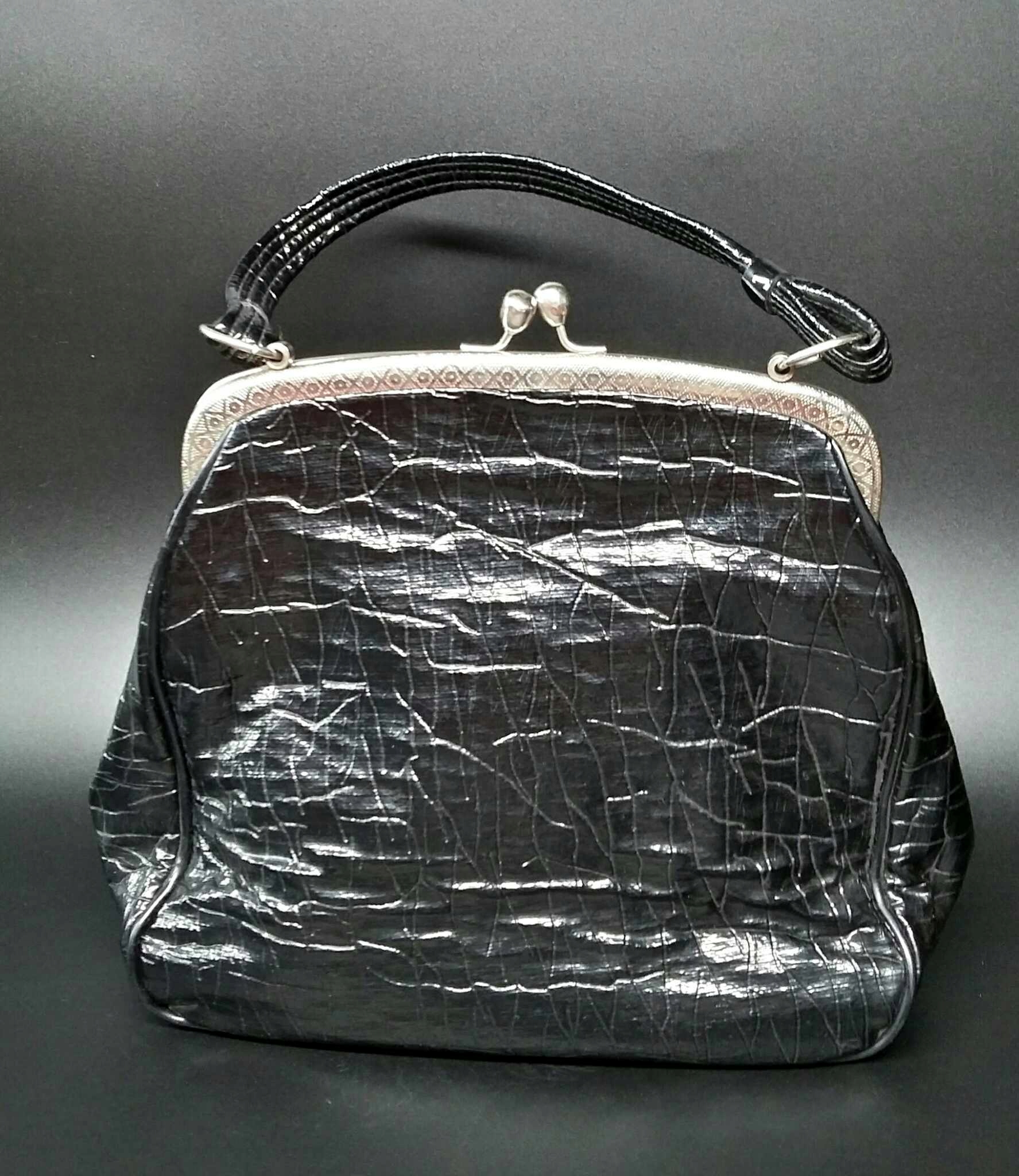 Torebka damska z glebokiego PRL-u. Wysokość 23cm. Stan używany bardzo dobry minus - torebka nosi nieznaczne slady używania. Bigiel sprawny. Wnętrze czyste w stanie bardzo dobrym. Zapraszam!!!