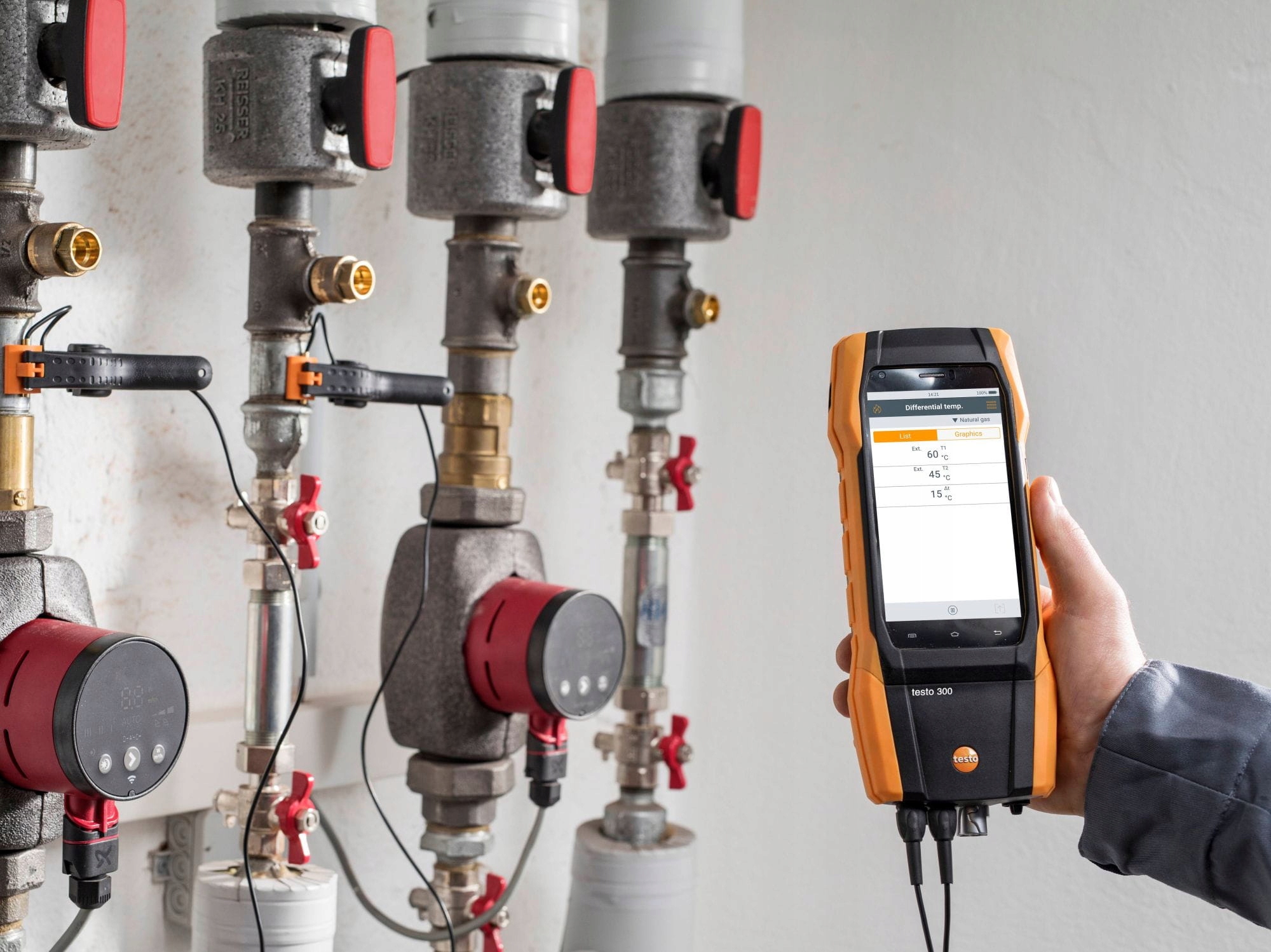 Analizator spalin testo 300 jest niezbędnym narzędziem do wszystkich zadań w ogrzewnictwie: testowany przez TÜV, dostarczany w zestawie z sensorami O2 i CO do 4000 ppm, podstawową sondą spalin, torbą transportową i innymi praktycznymi akcesoriami.