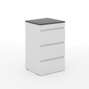 Solidna konstrukcja wykonana z wysokiej jakości laminowanych płyt wiórowych oraz PVC gwarantuje nie tylko trwałość, ale także elegancki wygląd, który doskonale wkomponuje się w każde wnętrze. Trzy pojemne szuflady umożliwiają przechowywanie różnorodnych przedmiotów, od bielizny po artykuły biurowe, zapewniając porządek i organizację.