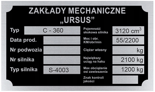 Предложение распространяется на табличку (1 шт.) URSUS C360 маркировка