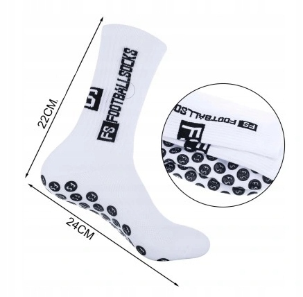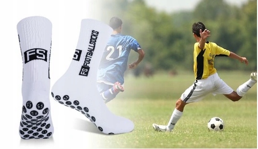 Oferowana wersja sportowych skarpet antypoślizgowych ma wydłużony ściągacz, dzięki czemu wkładając do nich ochraniacze piłkarskie, a następnie ubierając na nie getry piłkarskie bez stópek, uzyskujemy idealne rozwiązanie, które obecnie stosuje większość piłkarzy, mając pewność że przy dynamicznej grze w piłkę nożna, ochraniacz nie wypadnie. Nasz model skarpet przede wszystkim poprawi stabilność stopy oraz precyzyjniejsze "czucie" piłki.