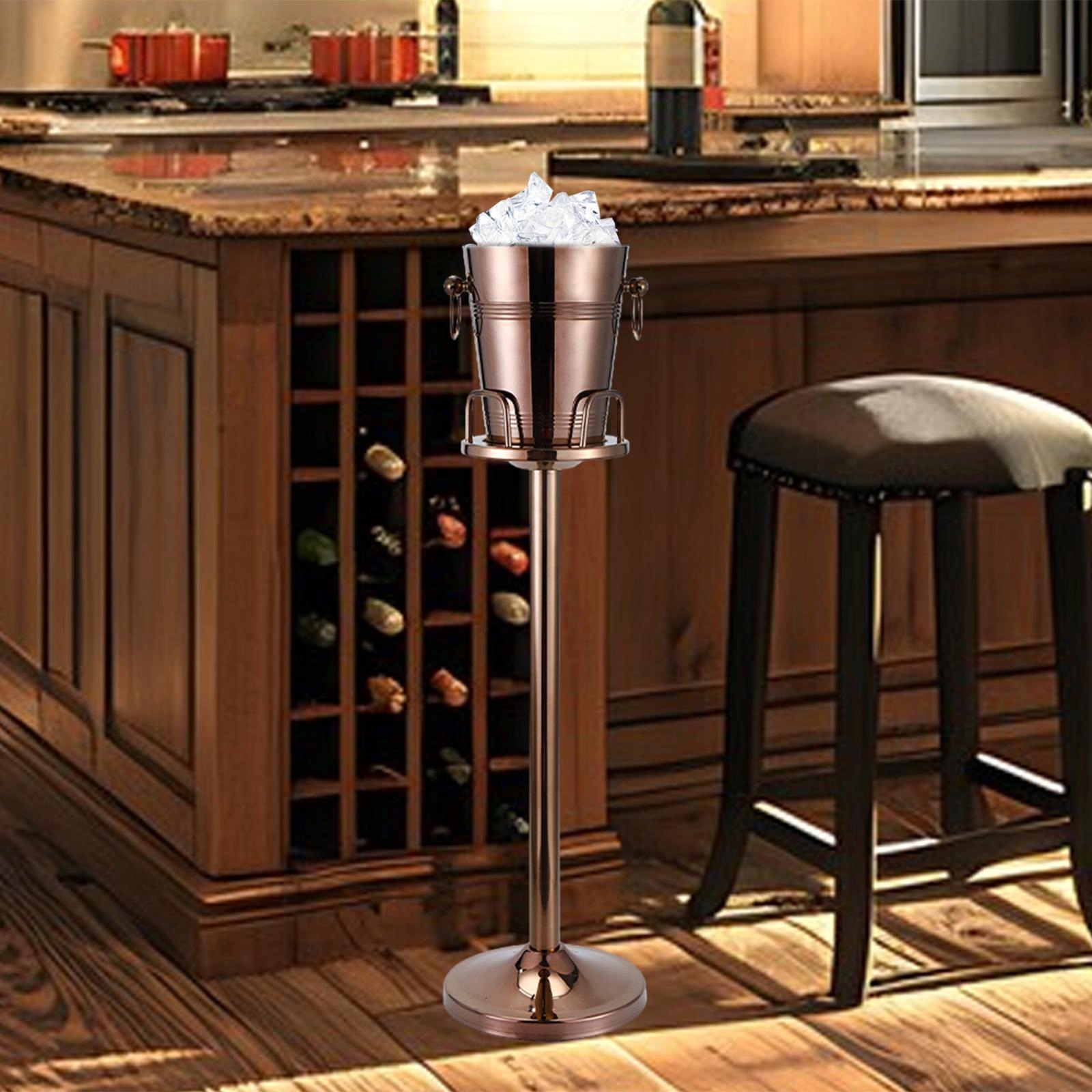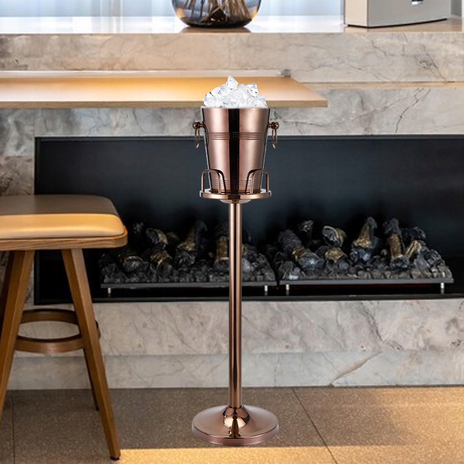 Wiadro na lód ze stojakiem Pojemnik na lód Pojemnik na napoje Pojemnik na lód Wiadro chłodzące wino Wysokość 90,8 cm Różowe złoto