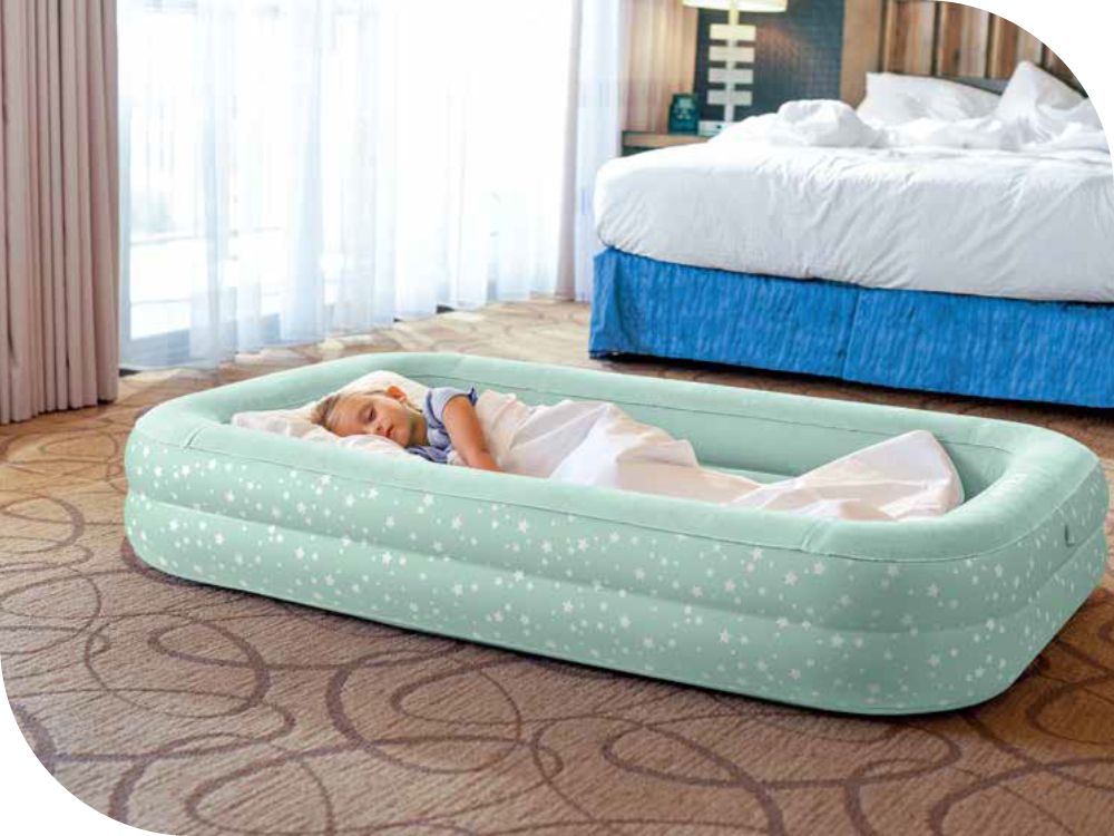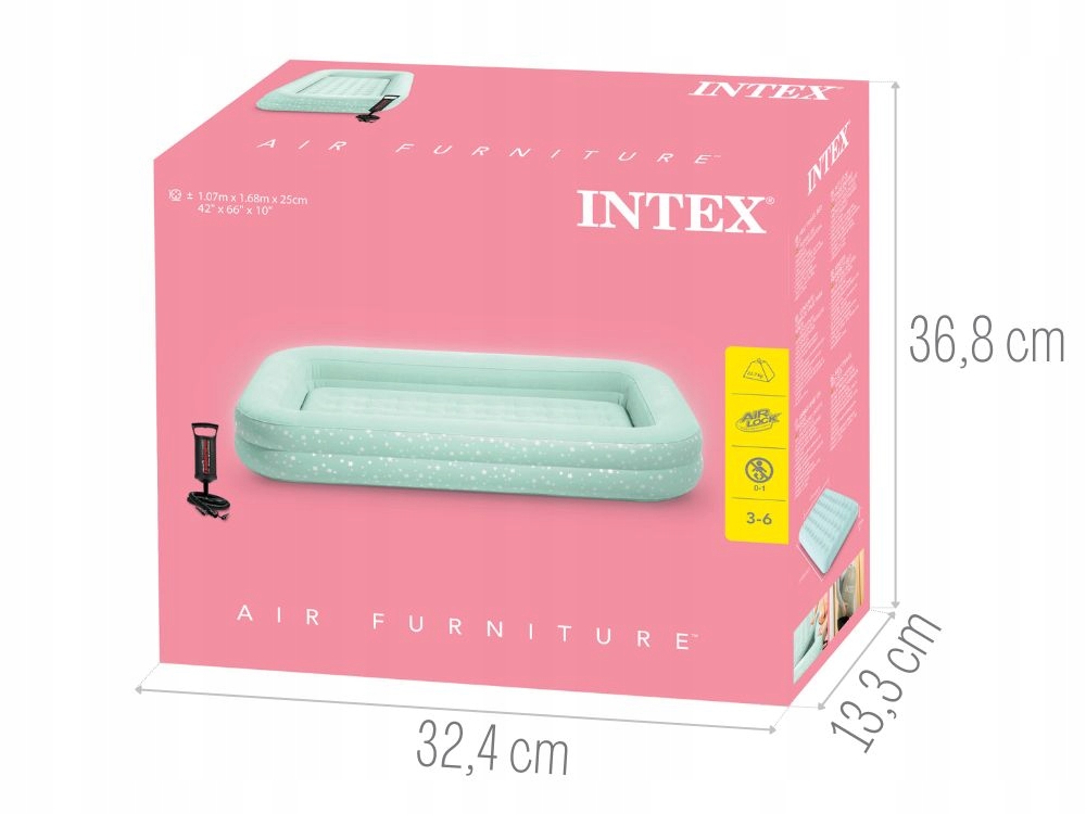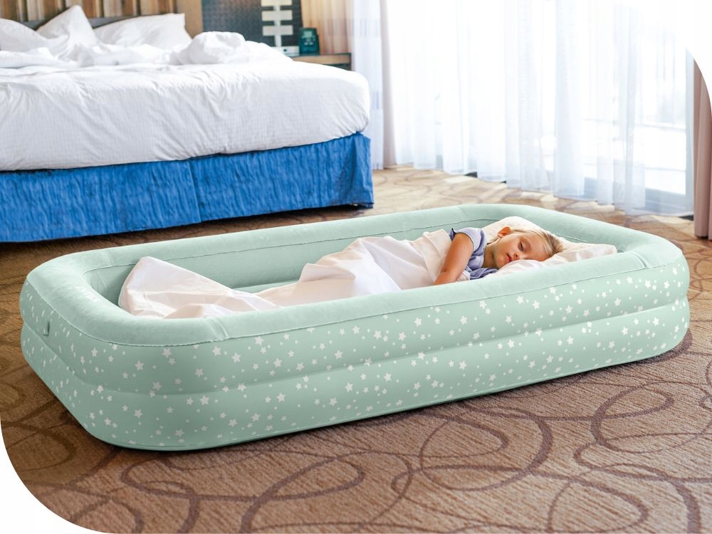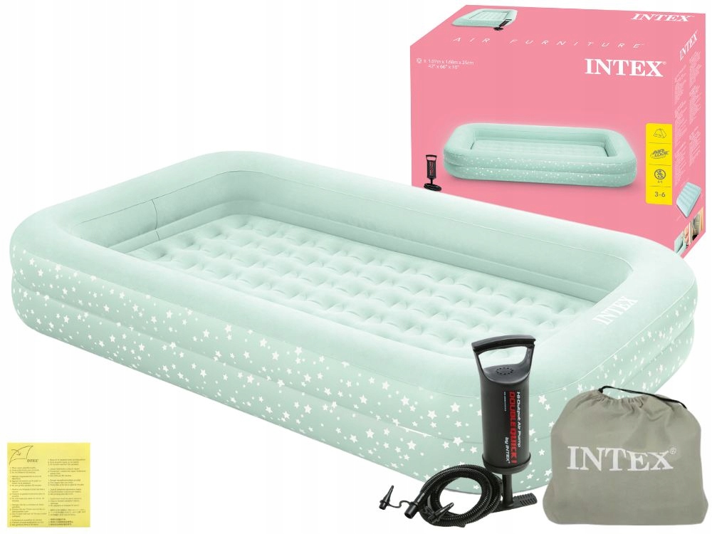 Dmuchany materac dla dziecka marki Intex z kolekcji Kidz Travel Bed zapewnia maksymalną wygodę oraz funkcjonalność. Materac jest świetnym rozwiązaniem dla rodzin z dziećmi - może posłużyć jako łóżko turystyczne. Produkt pokryty został materiałem welurowym, który z łatwością można wyczyścić wilgotną szmatką. Dołączona do zestawu pompka ręczna pozwoli na szybkie napompowanie i użytkowanie materaca. Produkt dzięki swoim wymiarom idealnie nadaje się dla dzieci w wieku 3-6 lat.