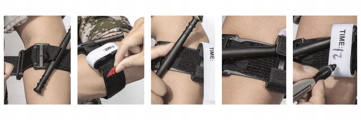 Opaski uciskowej typu CAT należy używać wyłącznie wtedy, gdy jest to wskazane. W przypadku niewłaściwego użycia pacjent może nadal krwawić, a nawet stracić kończynę (Lee i in., 2007; Dayan i in., 2008). Opaska uciskowa może być bezpiecznie pozostawiona na kończynie 2–4 godziny bez zwolnienia.
