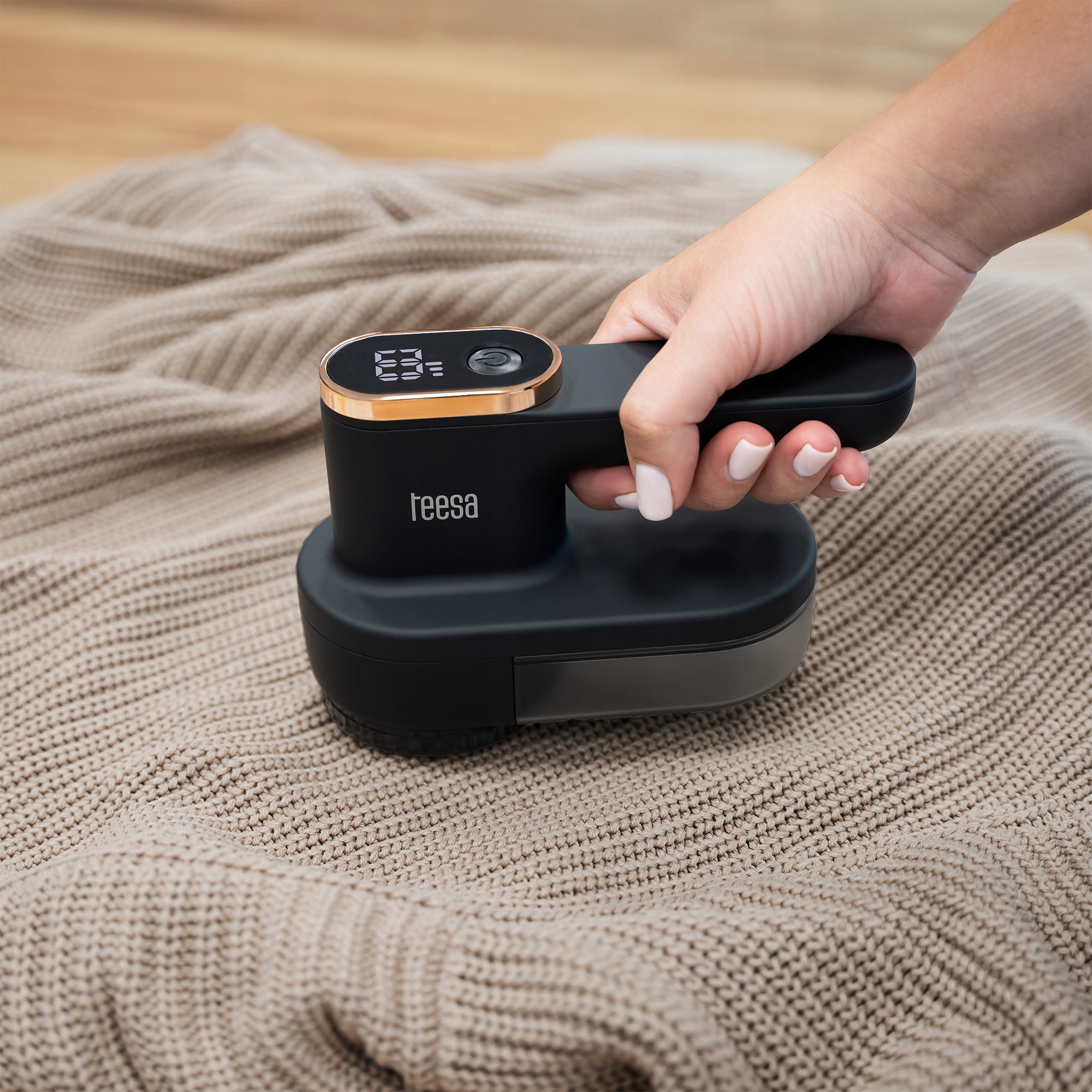 Odśwież swoje ulubione ubrania i ciesz się ich nieskazitelnym wyglądem dzięki bezprzewodowej golarce do ubrań Teesa LR40. Zastosowane w niej 6 ostrzy ze stali nierdzewnej sprawnie i szybko usunie wszelkie zmechacenia z Twojej garderoby. Łatwość użytkowania i higienę zapewnia pojemnik o pojemności 90 ml, którego zapełnienie możesz łatwo kontrolować, by opróżnić w odpowiednim momencie.