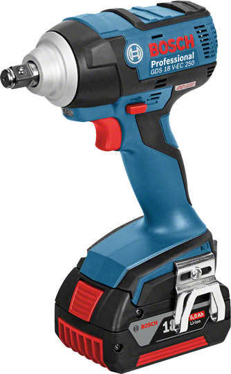 Opis Akumulatorowy klucz udarowy Bosch GDS 18 V-EC 250 przeznaczony do profesjonalnych zastosowań. Umożliwia wydajne i szybkie wkręcanie, np. podczas montażu kół samochodów ciężarowych, pracy przy konstrukcjach stalowych i budowie maszyn oraz przy budowie rusztowań i regałów.