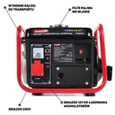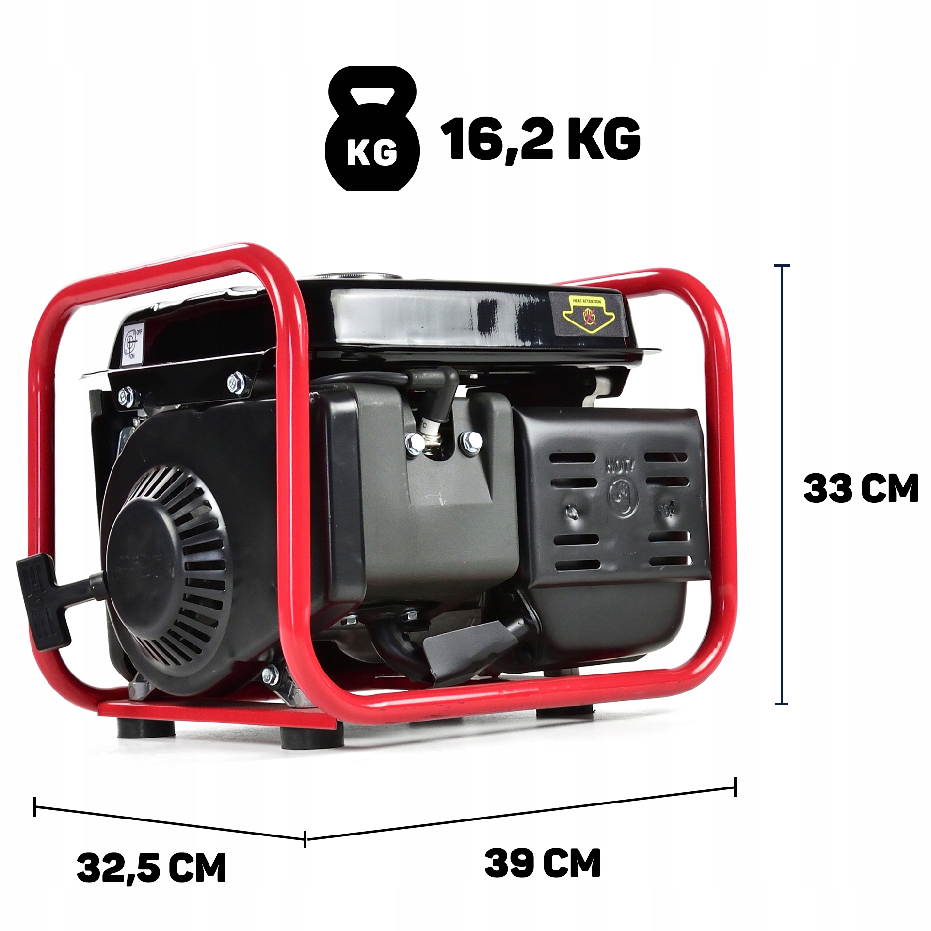 Profesjonalny agregat prądotwórczy wyposażony w dwusuwowy silnik spalinowy o pojemności 66cc i mocy 2 KM. Prądnica agregatu posiada miedziane uzwojenie, dzięki czemu pozwala wygenerować chwilową moc maksymalną na poziomie 720W. Moc stała jaką może być obciążany agregat wynosi 650W. Zbiornik paliwa o pojemności 4,2l pozwala na nieprzerwaną prace (przy średnim obciążeniu) przez ok. 6h.