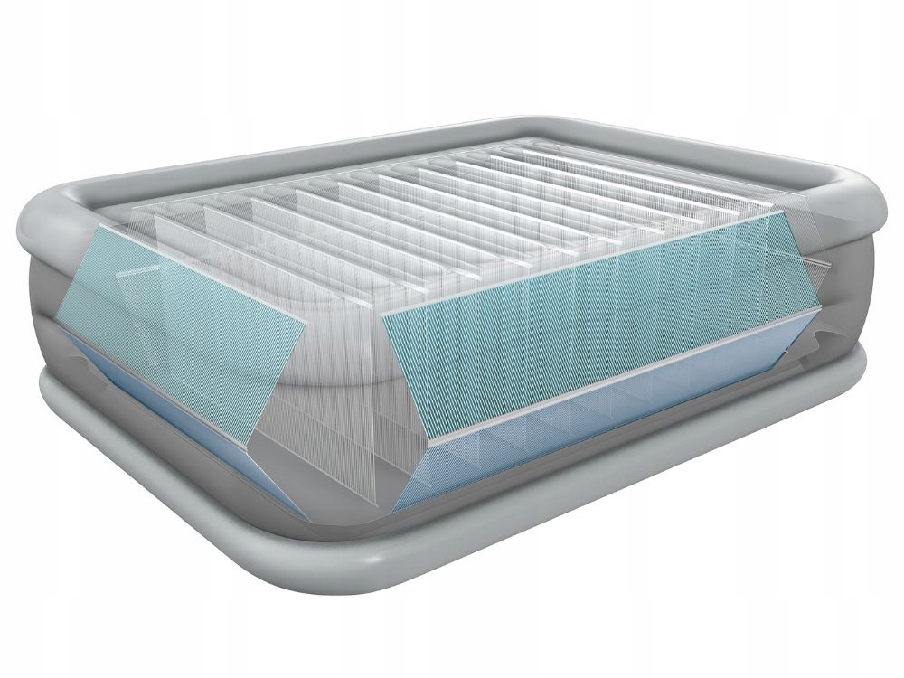 Dwuosobowy materac dmuchany z kolekcji Comfort-Plush High-Rise Air Mattress to produkt ekskluzywny, który zapewni maksymalną wygodę podczas jego użytkowania. Technologia Dura-Beam zapewnia doskonałą stabilność, a konstrukcja Fiber-Tech wysoką wytrzymałość. Materac welurowy będzie gotowy do użytku w około 5 minut, dzięki wbudowanej pompce elektrycznej. Podwyższona wysokość produktu jest jego wielkim atutem.