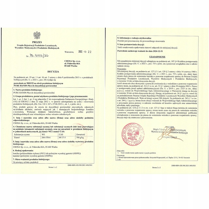 ✅ Produkt posiada wpis do rejestru produktów leczniczych, wyrobów medycznych i produktów biobójczych, zgodnie z ustawą. Pozwolenie nr 9002/22