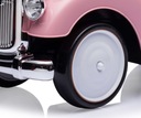 Retro autko może posłużyć dziecku jako pierwszy pojazd z prawdziwą kierownicą i klaksonem, również jako pchacz z otwieranym schowkiem na zabawki (mały bagażnik), na tyle pojazdu umieszczoną imitacją wlewu paliwa, a przednia część autka- grill jest w kolorze srebrnym.