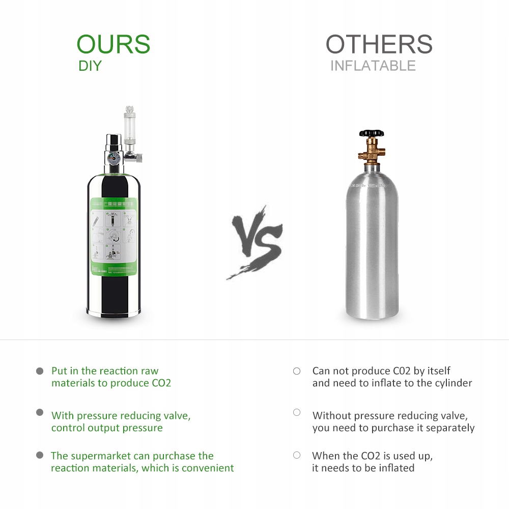 Profesjonalny system generatora CO2 z butelką ze stali nierdzewnej, lepszy niż proste generatory butelek plastikowych. Jest bardziej niezawodny, stabilny, trwały i wydajny.