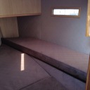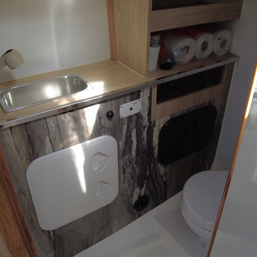 Интерьер спроектирован с учетом комфорта экипажа. Здесь можно найти удобные кровати., камбуз с газовой плитой и раковиной, а также Функциональный морской туалет.