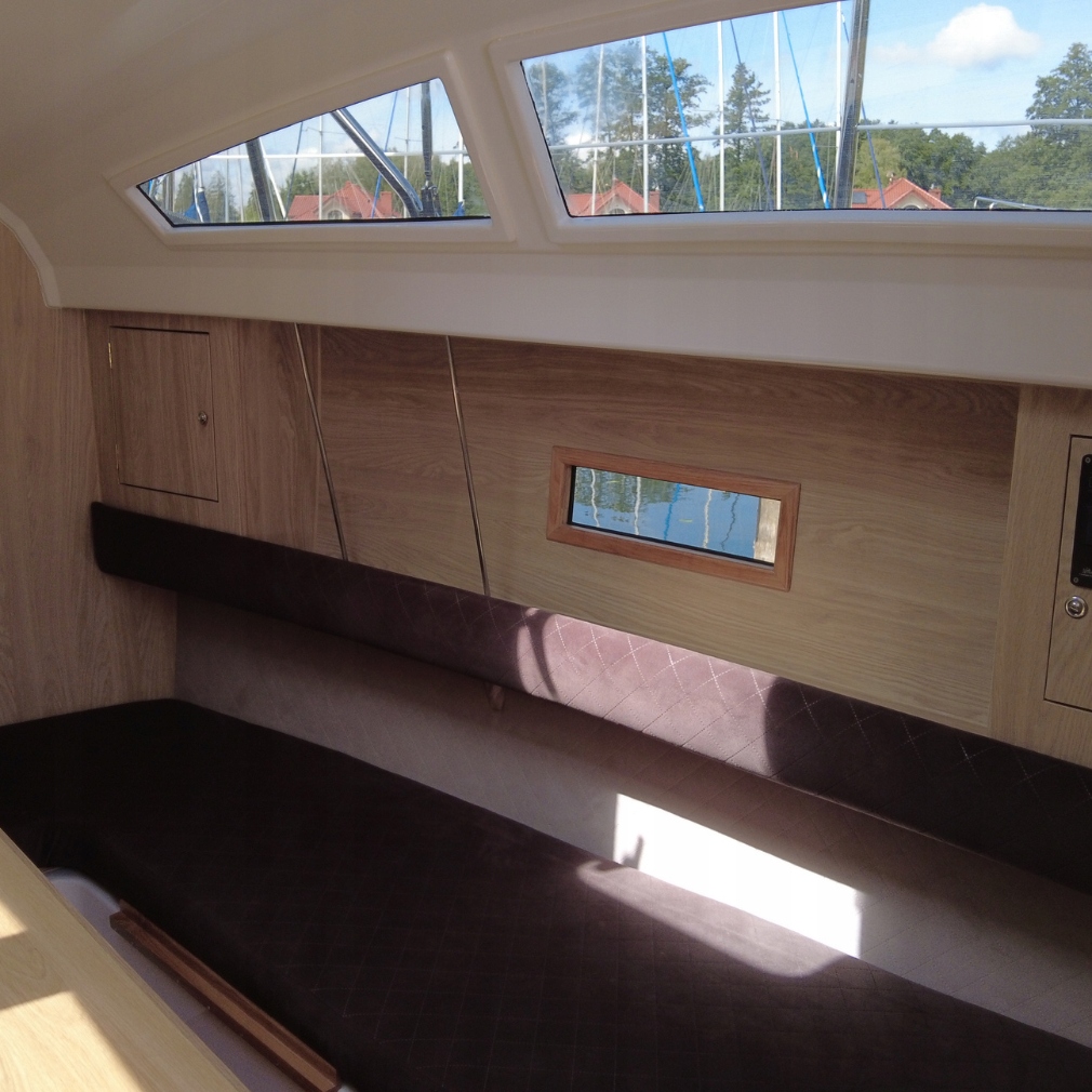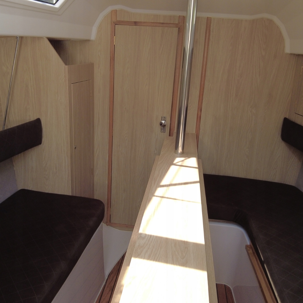 Устройство предлагает удивительно много места внутри для своих размеров. Высота в кабине высота 1,86 м позволяет удобно передвигаться, что редко встречается на яхтах этого типа. величия.