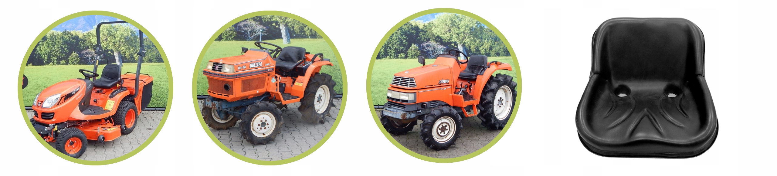 Siedzenie pasuje do mini traktorków japońskich marki Kubota.