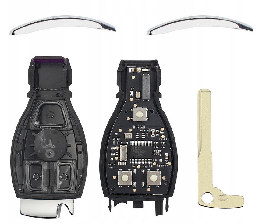 W ofercie przedstawiony jest zamiennik z jakością porównywalną do oryginału. Nie sprzedajemy ze znaczkiem gdyż jest to niezgodne z prawem. Z logiem marki Mercedes mogą być sprzedawane tylko kluczyki oryginalne, jednak w innych ofertach tak nie jest.