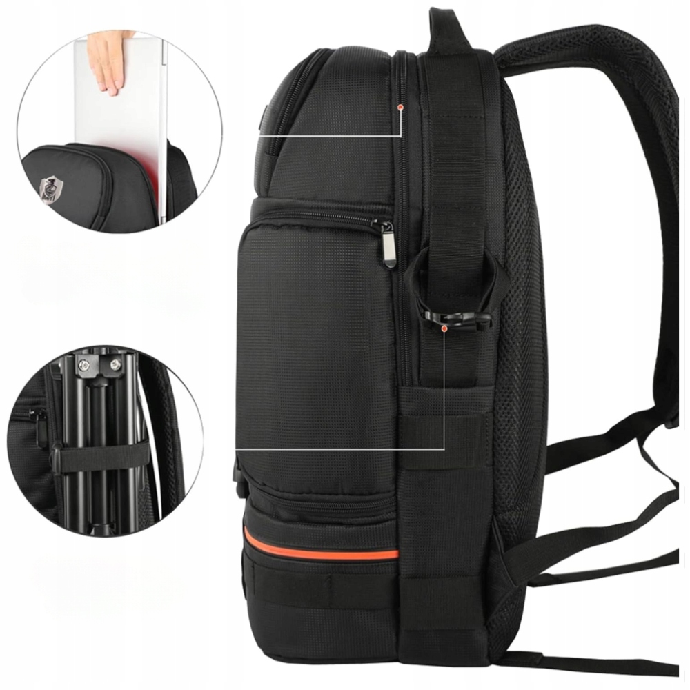Plecak wykonany jest z materiału OXFORD, który charakteryzuje się wodoodpornością ,odpornością na przetarcia, rozdarcia i inne uszkodzenia mechaniczne. Dzięki przemyślanej konstrukcji, plecak pozwala nie tylko bezpiecznie przechowywać aparat, ale także organizować i transportować różnorodne akcesoria fotograficzne, takie jak obiektywy, statyw, filtry, baterie czy karty pamięci. Wyposażony w specjalne przegrody i kieszenie, zapewnia łatwy dostęp do wszystkich potrzebnych elementów.