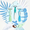 Ostrza są wyposażone w gumowy pasek ochronny, który delikatnie napina skórę, zanim ostrza dotrą do włosków, oraz w bardzo szeroki pasek nawilżający wzbogacony mleczkiem kokosowym.