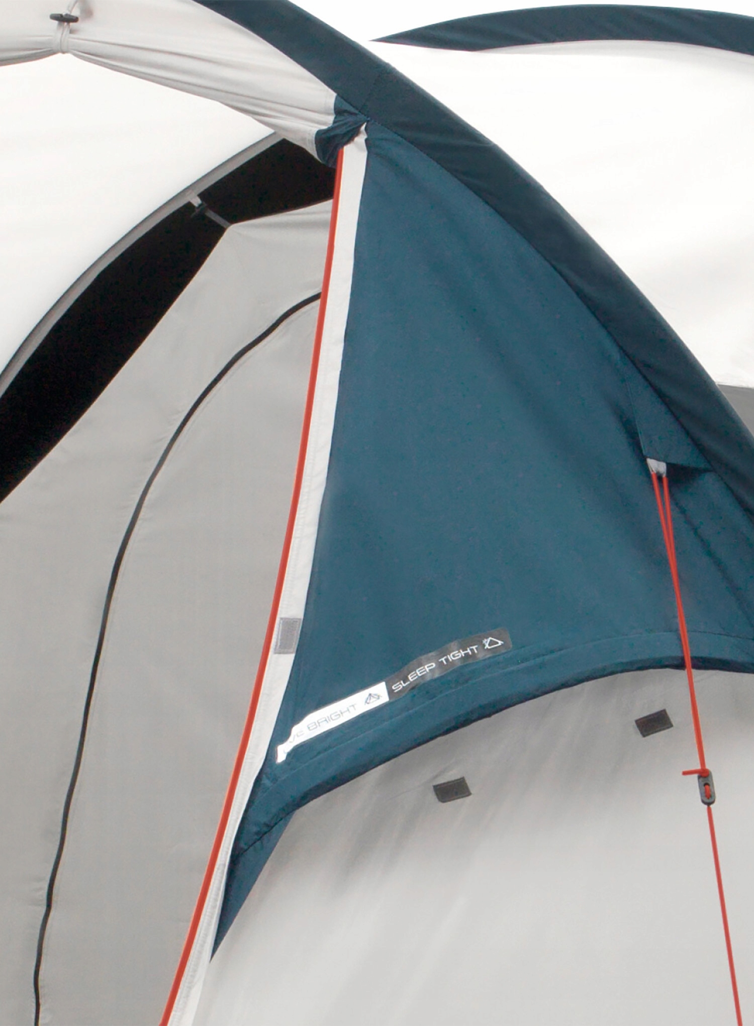 Namiot 5-osobowy Easy Camp Menorca 500 ma dwie sypialnie. Sypialnie wykorzystują rozwiązanie SleepTight+, które zapewnia wysoki poziom zaciemnienia nawet w słoneczny dzień. Namiot ma spory salon, który jest idealny do wspólnego spędzania czasu lub przechowywania bagażu. Wysokość części mieszkalnej pozwala swobodnie stać. Podłoga z polietylenu może zostać zdjęta w przedsionku.