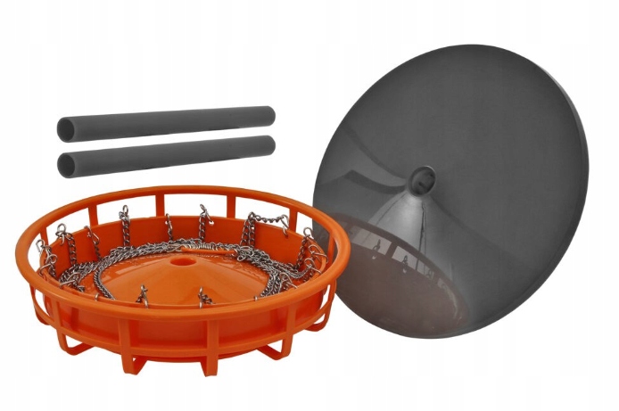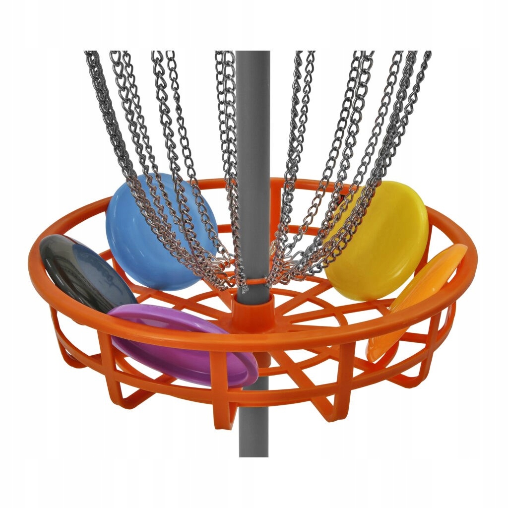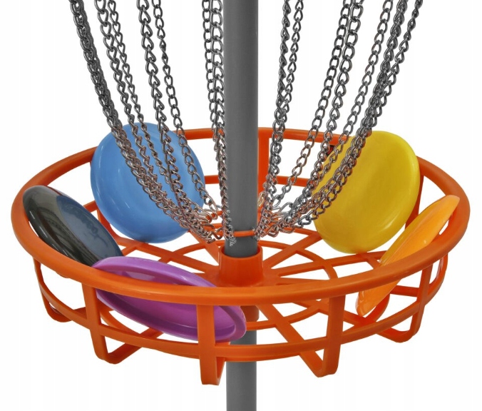 Złożony kosz ma wysokość 97 cm i średnicę 30 cm. Do kosza można rzucać dyskami i frisbee, które zostaną złapane dzięki łańcuszkom, a szerokie dno zapewni stabilną pozycję.
