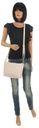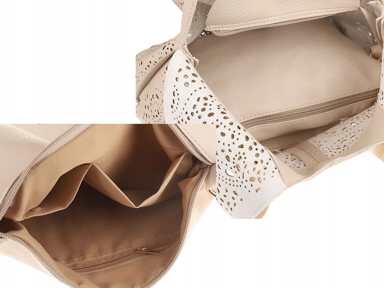 Torebka jednokomorowa, w środku znajduje się kosmetyczka która może służyć jako dodatkowa torebka listonoszka. Kosmetyczka zawiera dwie kieszonki otwarte oraz kieszeń zapinana na suwak.