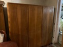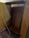 solidna szafa ubraniowa z okresu PRL widoczna na zdjęciach , z lewej strony są półki a z prawej na górze półka pręt na wieszaki .szer 180 cm , gł 60 , wys 180 cm . Szafa ładna w stanie dobrym z niewielkimi śladami użytkowania w komplecie półki i zamki oryginalne