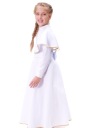 ALBA komunijna dziewczęca długa firmy SOMIR ze złotymi dodatkami w rozmiarze 134 S - oferta dla dziewczynki o szczupłej sylwetce