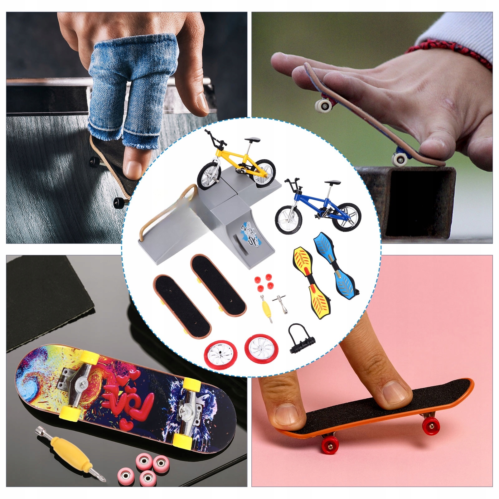 ✅1 x Scena 2 x rowery 2 x deskorolka 2 x deskorolka witalna 1 akcesorium samochodowe 1 akcesorium do deskorolki