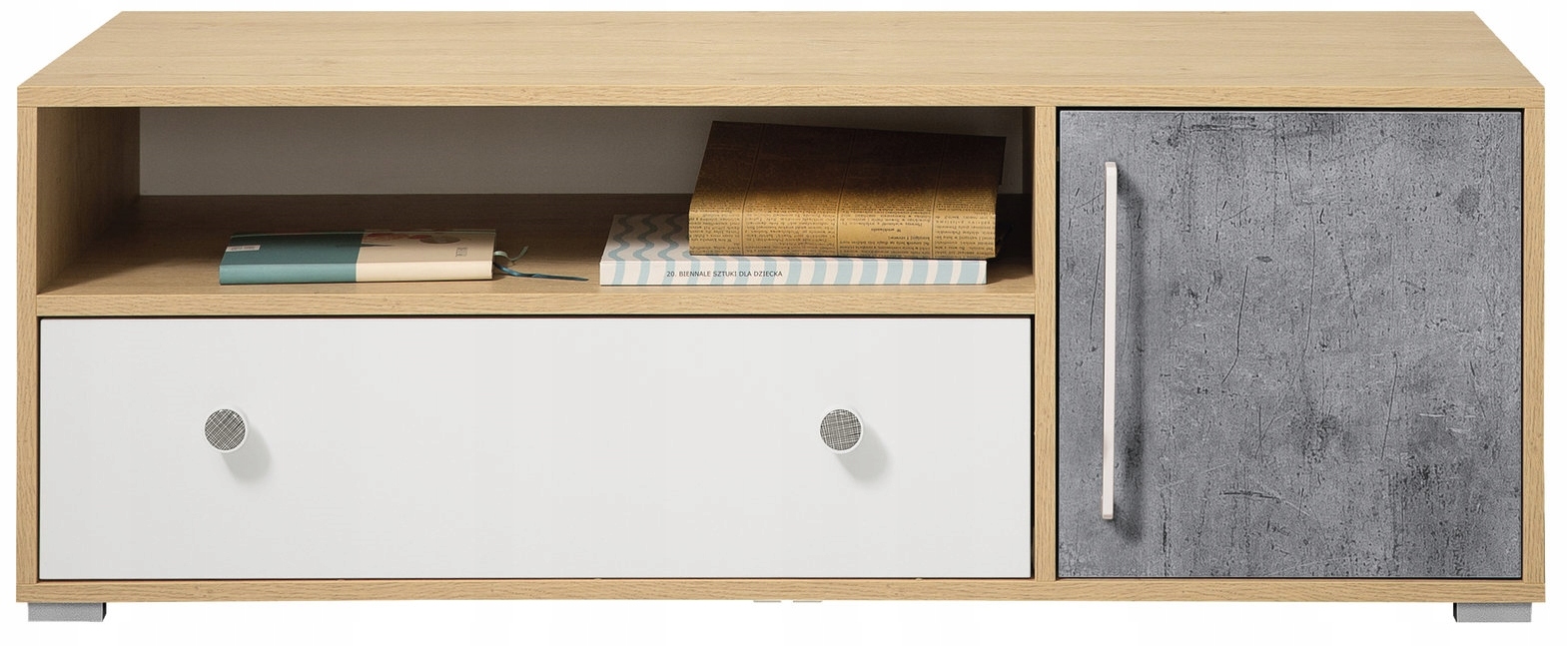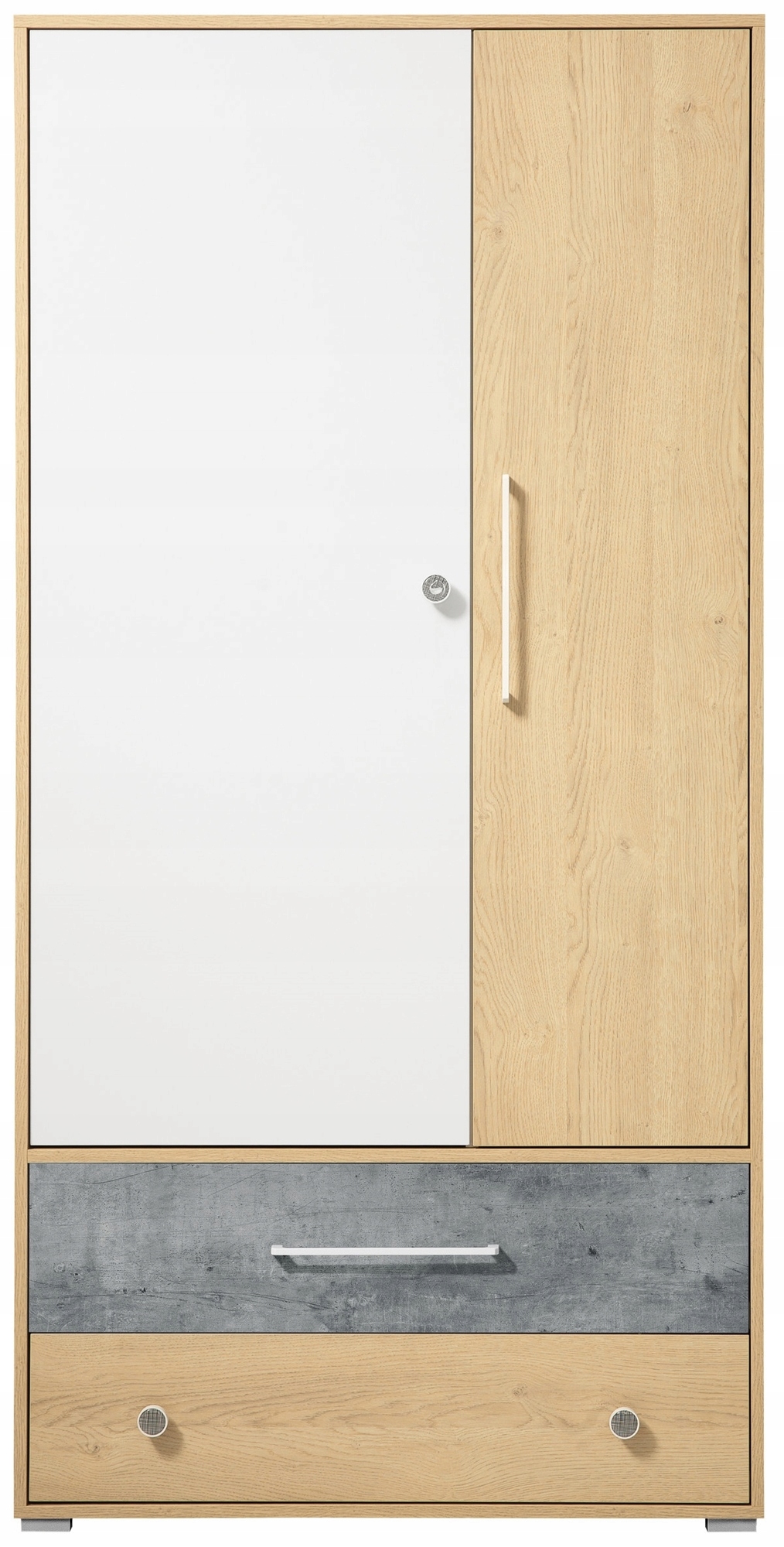 Zestaw mebli systemowych GRETA został wykonany z najwyższej jakości materiałów, dzięki czemu będzie służył przez długie lata. Meble wyróżnia nowoczesna stylistyka utrzymana w jasnych barwach. Modne połączenie bieli i betonu zostało przełamane ciepłym odcieniem dębu biszkoptowego. Dwa rodzaje uchwytów urozmaicą wnętrze ciekawym designem. System Greta posiada wiele modułów, więc wszystkie ubrania, zabawki i książki zostaną z łatwością uporządkowane.