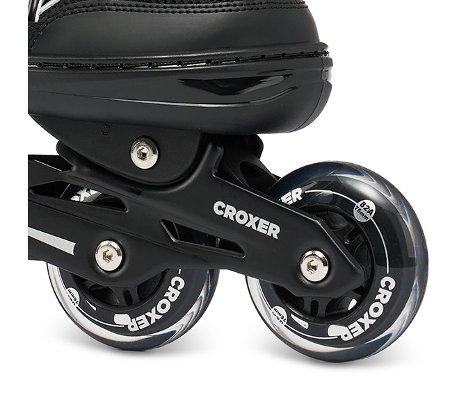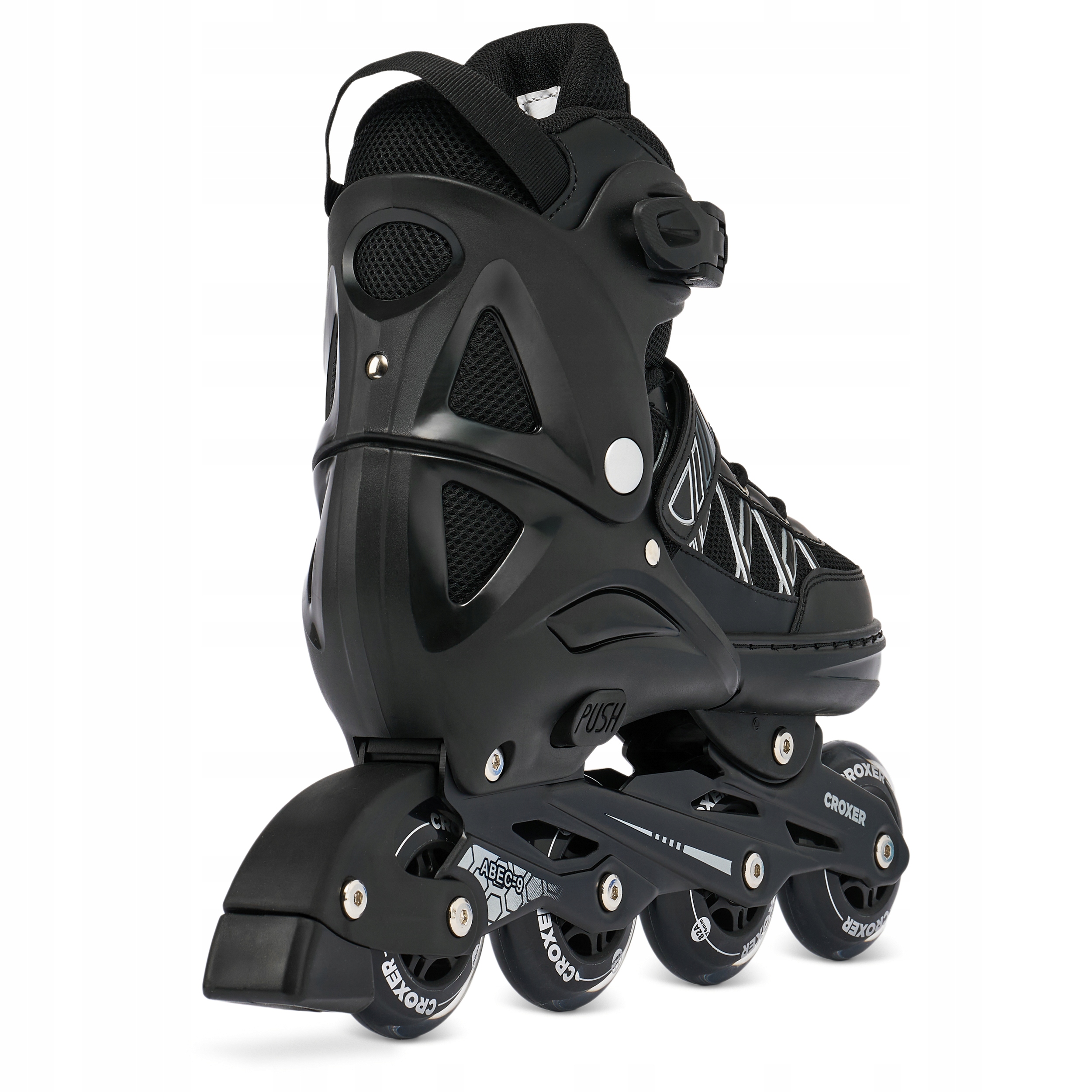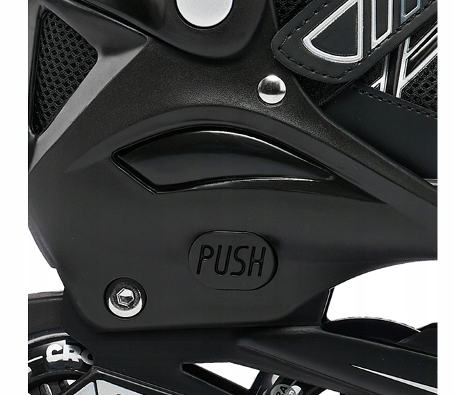 Do zmiany rozmiaru niepotrzebne są żadne narzędzia. Wystarczy nacisnąć przycisk i rozsunąć przednią skorupę buta. Dzięki temu rolki posłużą na wiele sezonów i zawsze będą dobrze dopasowane do rozmiaru stopy.