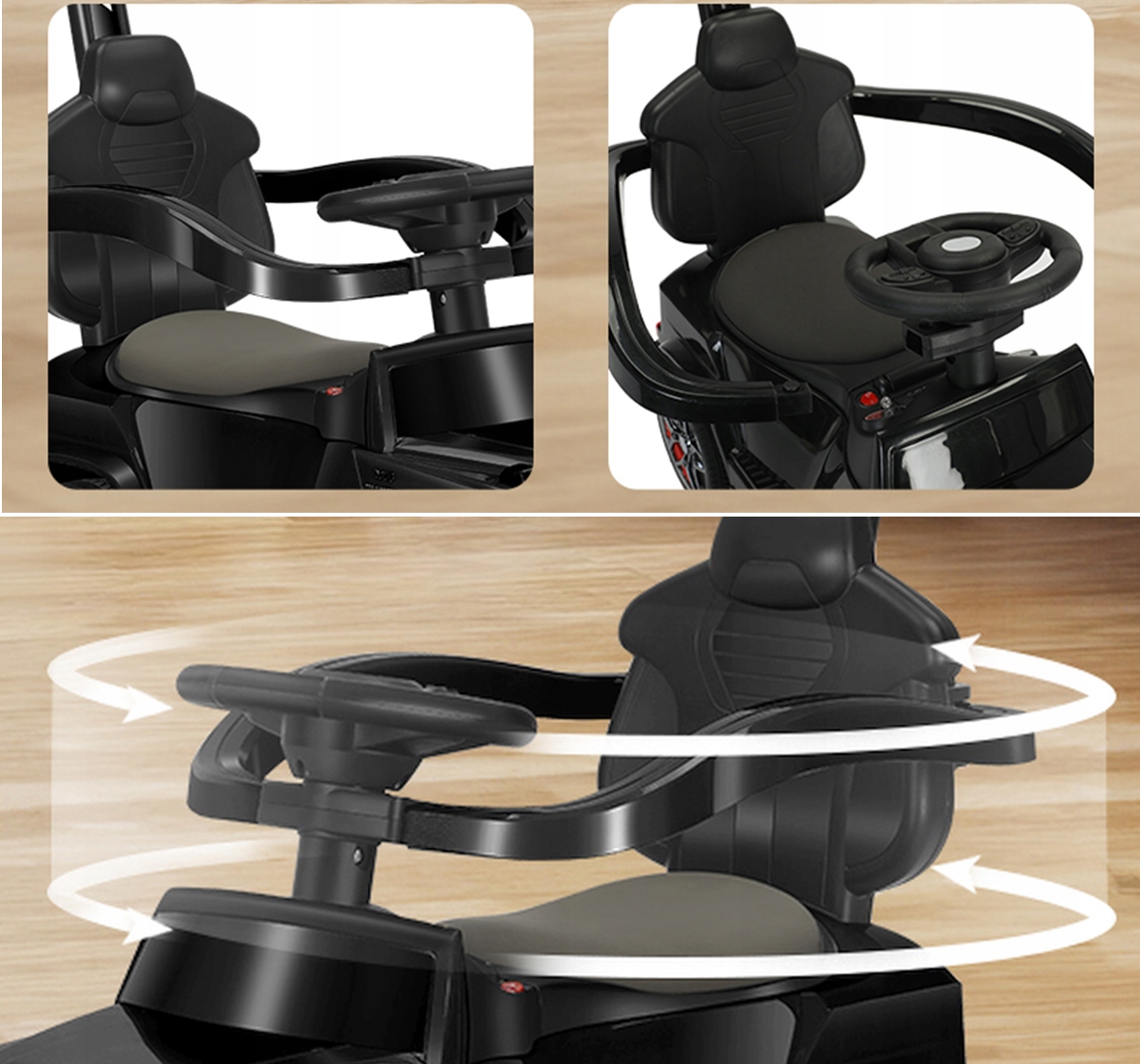 Dodatkowo, możliwość sterowania kierownicą pozwala dziecku na naukę kierowania, co wprowadza element interaktywnej zabawy i sprawia, że jazda staje się jeszcze bardziej ekscytująca.