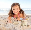 Maluch może zbudować zamek czy stworzyć morskie stworzenia oraz dekoracje z pomocą foremek z zestawu. Silikonowe tworzywo sprawia że piaskowa babka bez problemu wysunie się z formy.