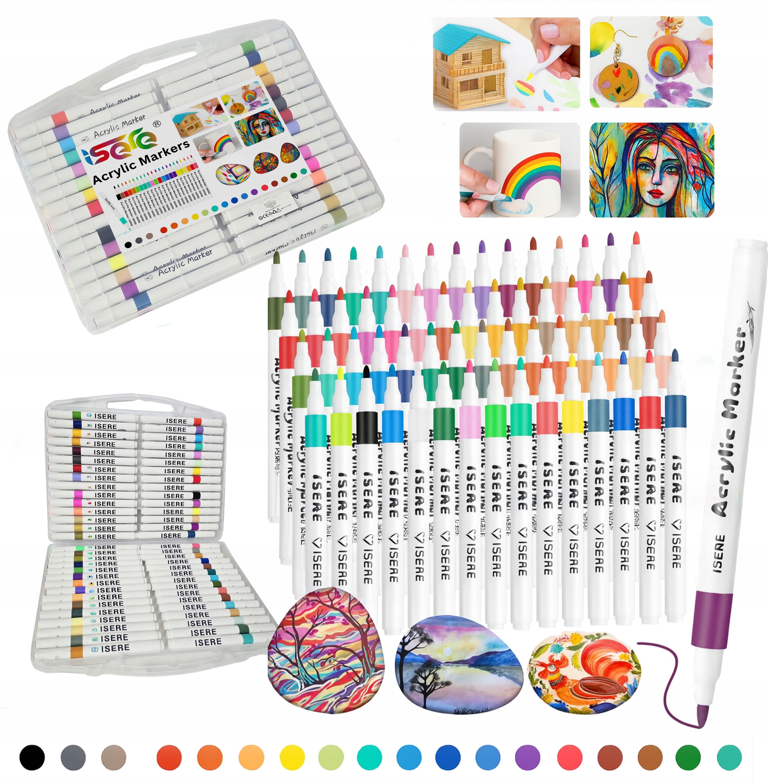Zestaw zawiera 60 intensywnych i jaskrawych oraz stonowanych i pastelowych kolorów, umożliwiających tworzenie wyrazistych linii oraz pełni kryjących powierzchni. Maluj śmiało i eksperymentuj na papierze, płótnie, drewnie, ceramice, szkle, metalu, kamieniu, tworzywach sztucznych i wielu innych.