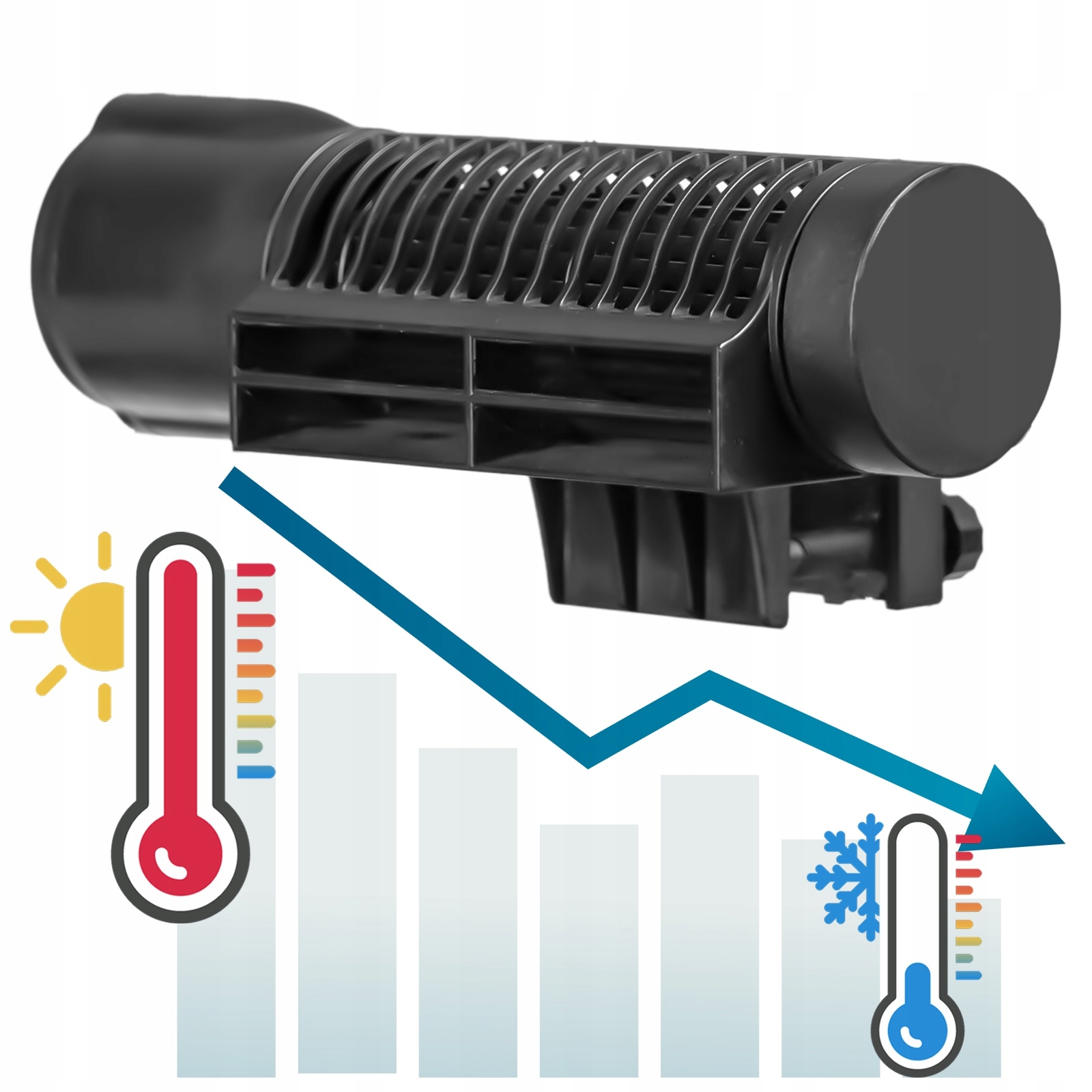 Wyjątkowej budowy wentylator chłodzący do akwarium. Pozwala obniżyć temperaturę wody podczas letnich upałów. Płaski kształt oraz uchwyt na szybę pozwala łatwo i dyskretnie zamontować urządzenie. Na szczególną uwagę zasługuje termostat z sondą regulujący pracą wentylatora. Zakres pracy termostatu od 18st.C do 36st.C.