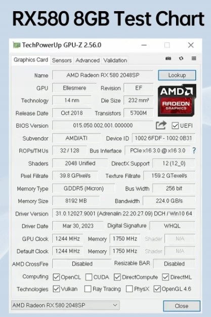 Код производителя Radeon RX580 8G