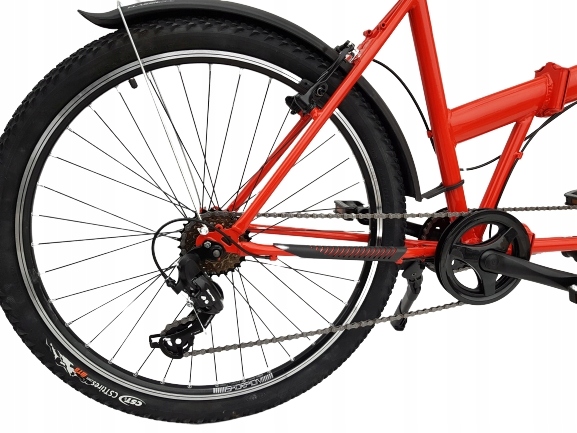 Podstawą każdego tandemu SKŁADANEGO jest solidna rama, która składa się na trzy części. Każde “łamanie” roweru to dwa zawiasy umieszczone pionowo nad sobą. Każdy z zawiasów posiada podwójną blokadę otwarcia – dźwignię – szybko zamykacz oraz metalowy trzpień blokujący zawias przed niepożądanym otwarciem. Pomimo wysokiego zaawansowania konstrukcji ramy złożenie roweru na trzy części zajmuje około 1 minutę i nie wymaga użycia żadnych narzędzi. Tandem SKŁADANY po złożeniu przedniej części ma długość około 165 cm – jest to długość standardowego, jednoosobowego roweru. Tak złożony rower można przewozić na bagażniku dachowym, bagażniku na haku lub po prostu przechowywać w ciasnej piwnicy czy nie dużym garażu. Po złożeniu obydwu części roweru długość roweru wynosi około 80 cm – tak złożony rower zmieści się do bagażnika większości samochodów osobowych.