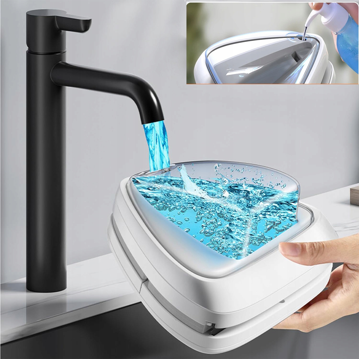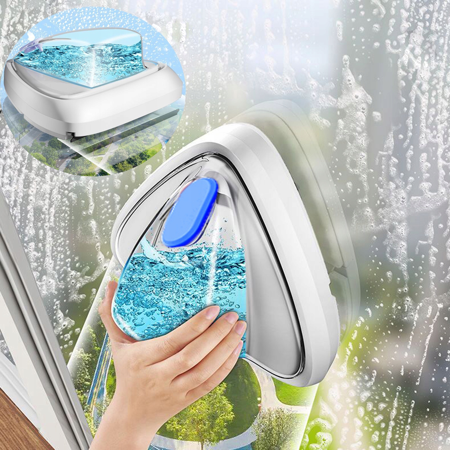 Urządzenie posiada z obu stron zbiorniczek na wodę o dużej pojemności. Po napełnieniu wodą może jednorazowo wytrzeć około 1 metra kwadratowego szkła. Szkło będzie czystsze, jeśli przechylisz płyn do mycia okien, aby wylać roztwór czyszczący na szybę przed napełnieniem zbiorniczka wodą.