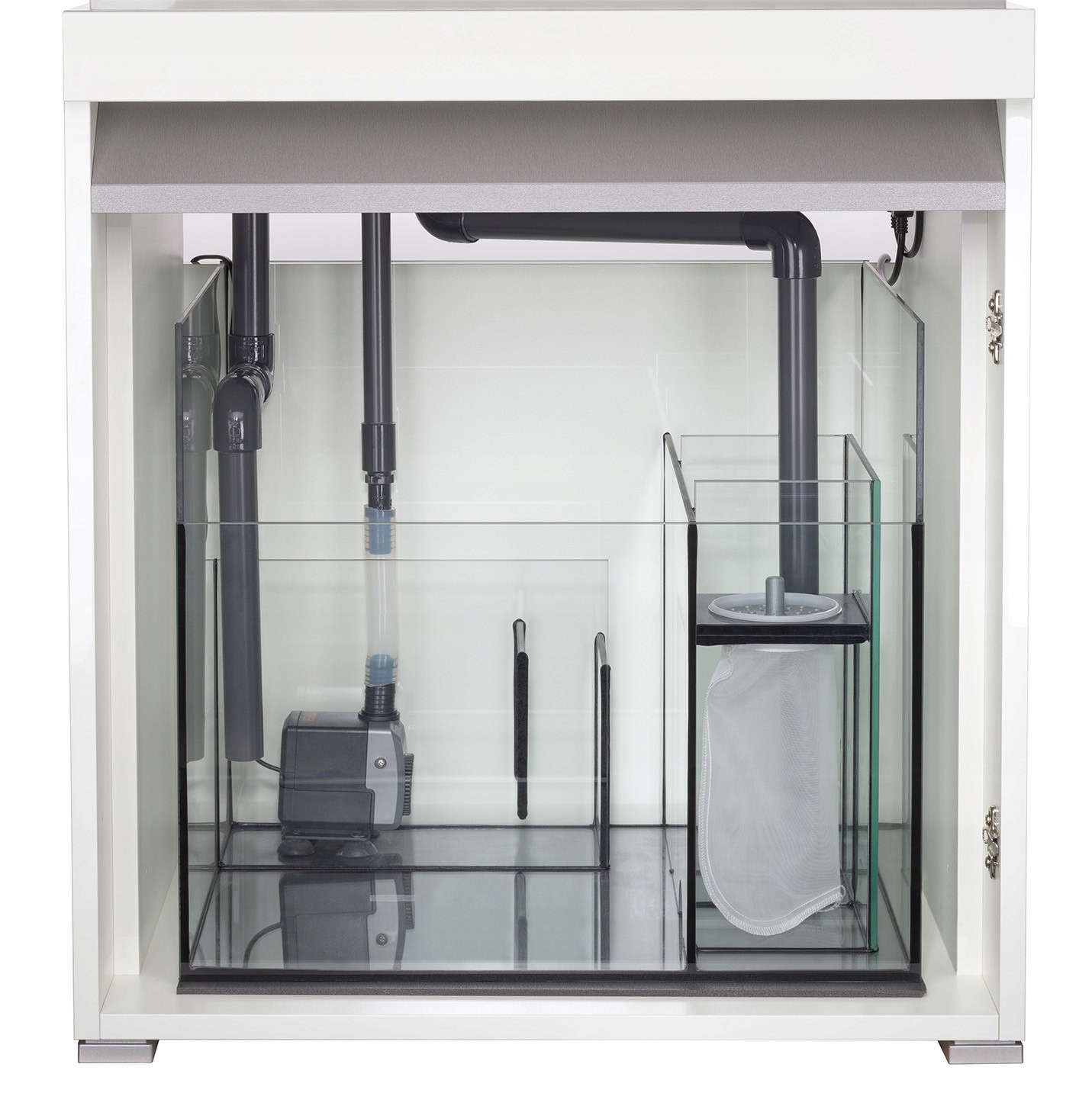 Akwarium Incpiria Reef wykonane jest z wysokiej jakości białego szkła, które zapewnia nieskazitelną przejrzystość, umożliwiając pełną obserwację mieszkańców akwarium. Wbudowany system zabezpieczenia przed przelaniem oraz duży sump filtra z komorą na wodę osmotyczną to rozwiązania, które podnoszą bezpieczeństwo i ułatwiają konserwację. Dzięki szerokim opcjom pojemności – od 230 do 530 litrów – zestaw Incpiria Reef sprawdzi się w różnych aranżacjach i wielkościach przestrzeni. W zestawie znajdują się również wszystkie niezbędne elementy do natychmiastowego uruchomienia, takie jak pompa obiegowa EHEIM compactON 3000 oraz wstępnie złożone orurowanie "plug&play". Całość uzupełnia stylowa szafka, dostępna w kilku wykończeniach, wyposażona w sterowane pilotem oświetlenie ledowe o szerokiej palecie kolorów i automatycznych programach.