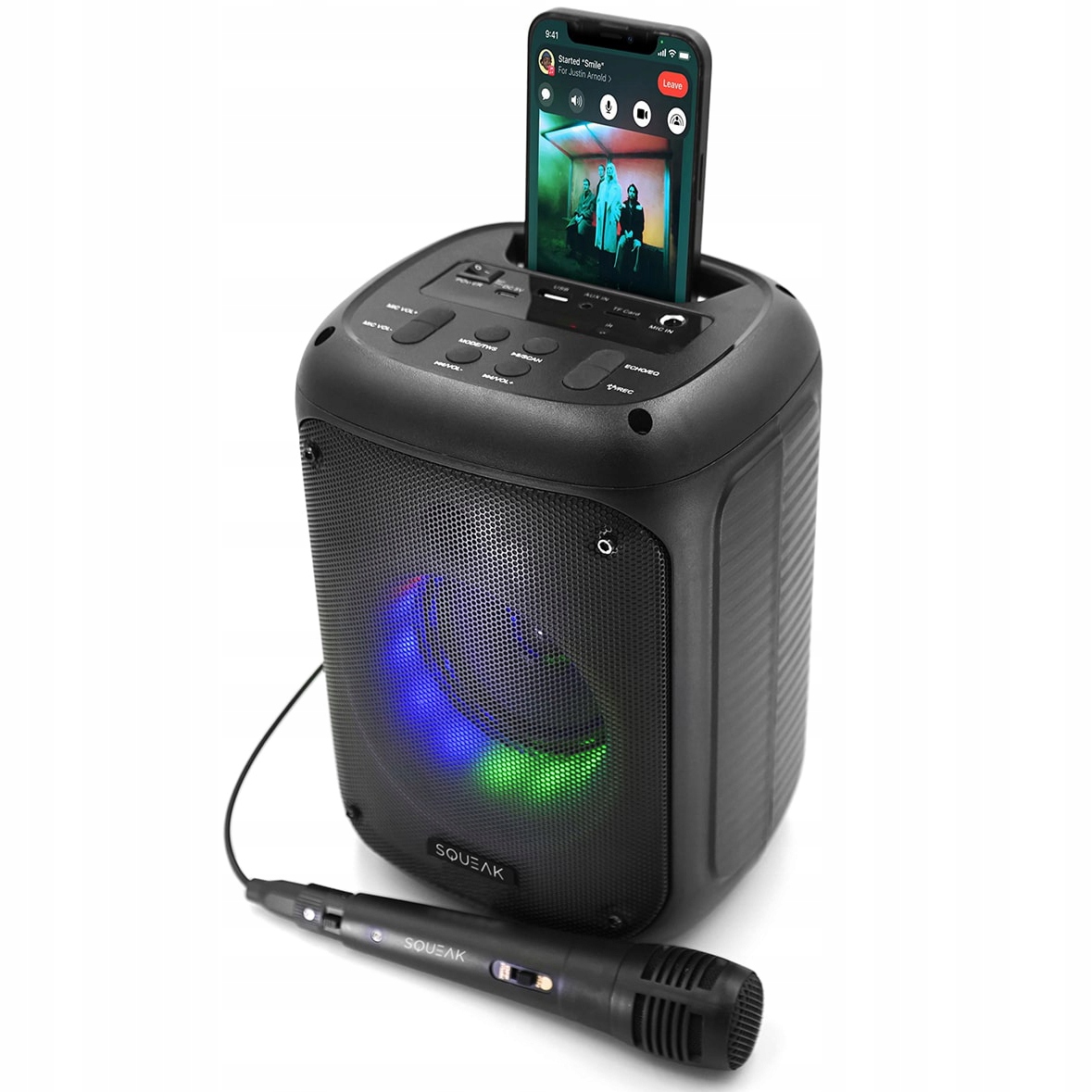 Głośnik został wyposażony w uchwyt na smartfona. Teraz możesz odtwarzać muzykę lub korzystać z funkcji karaoke, trzymając swój smartfon w bezpiecznym miejscu.