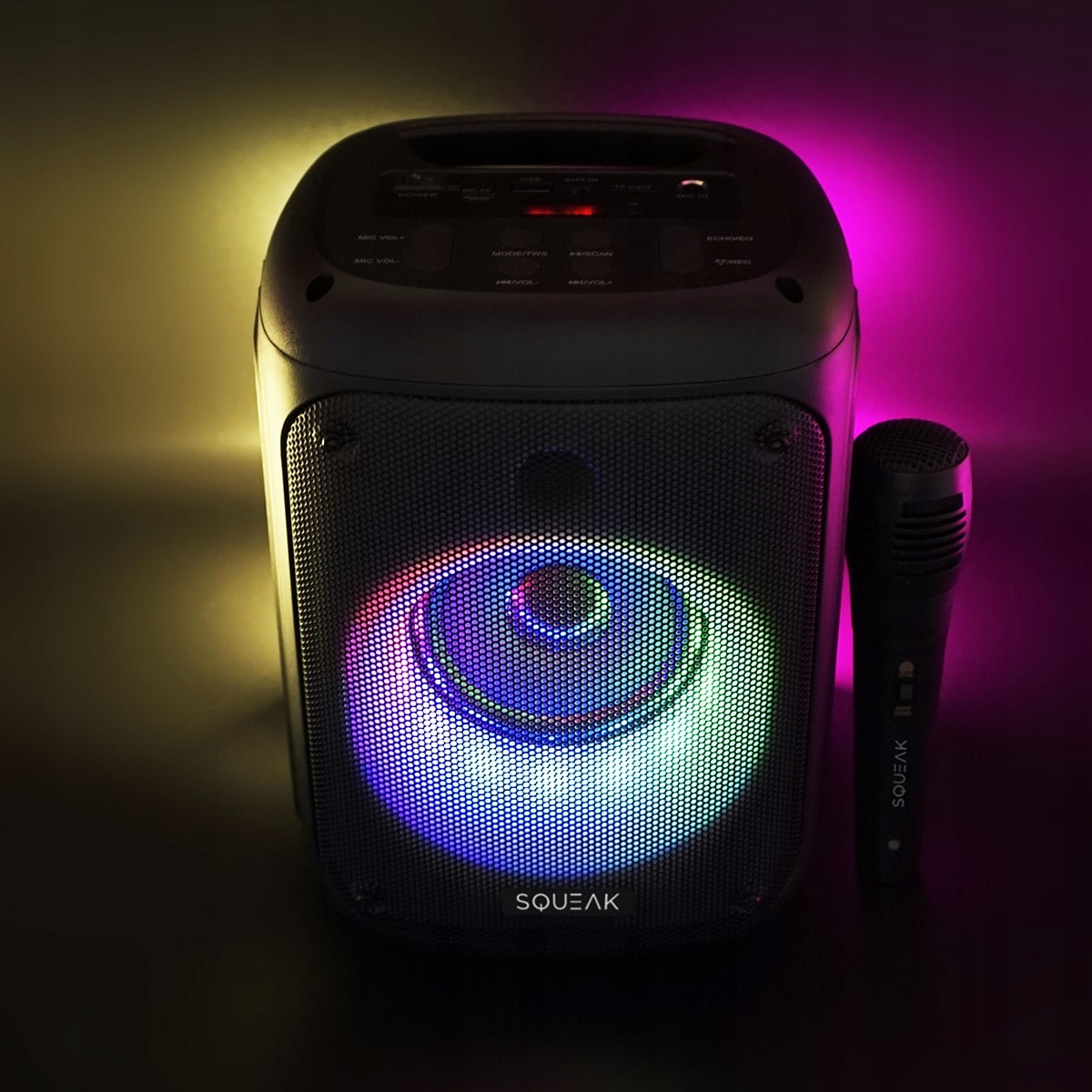 Tutaj masz okazję bliżej przyjrzeć się wszystkim detalom tego wyjątkowego urządzenia. Zobacz, jak elegancka i solidna jest obudowa, jak efektownie prezentuje się kolorowe podświetlenie disco, oraz inne elementy, które sprawiają, że Squeak BeatFlow to doskonały wybór dla każdego entuzjasty muzyki.