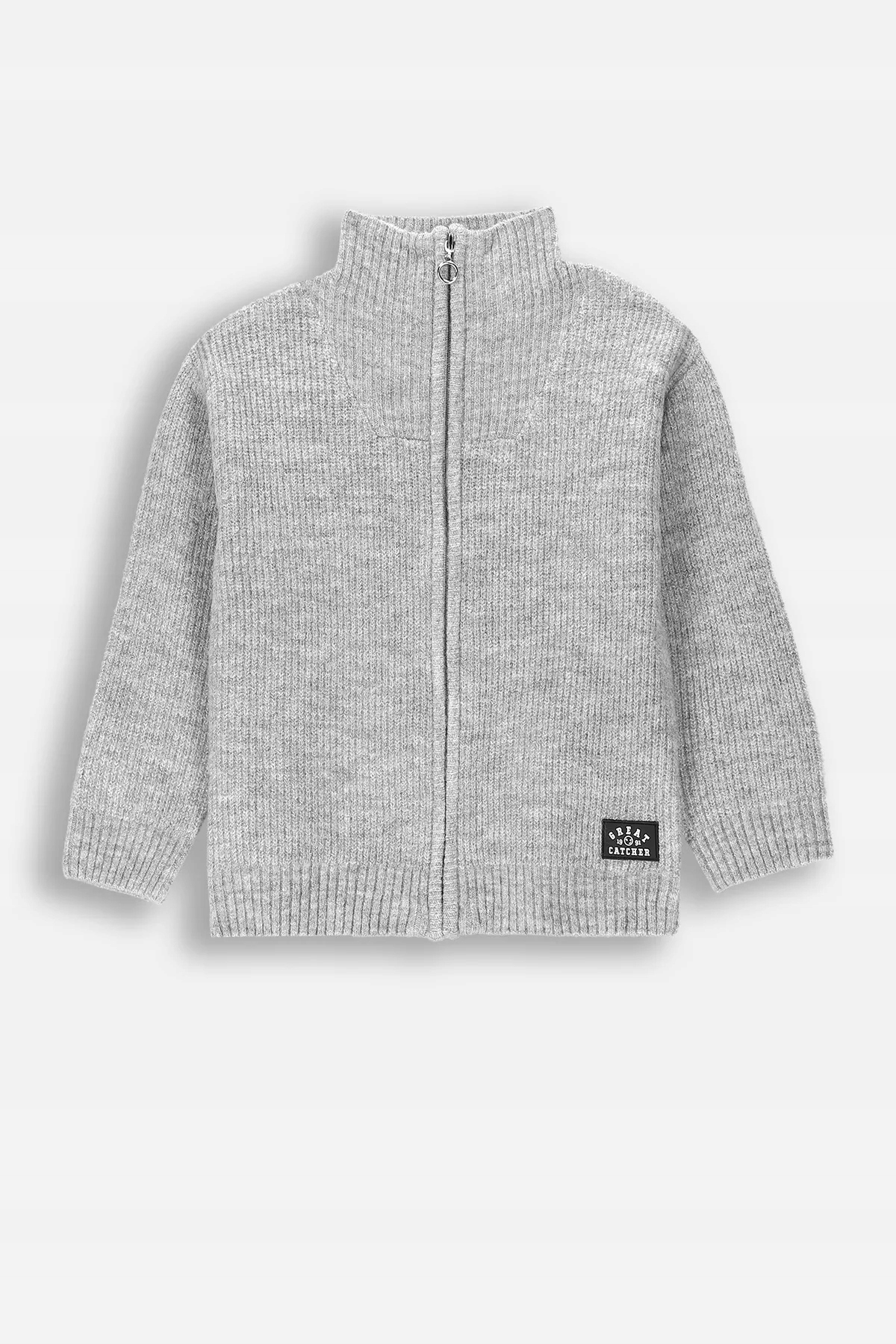 Sweter zapinany na zamek dla chłopca. Wyższy kołnierz. Naszywka na przodzie.